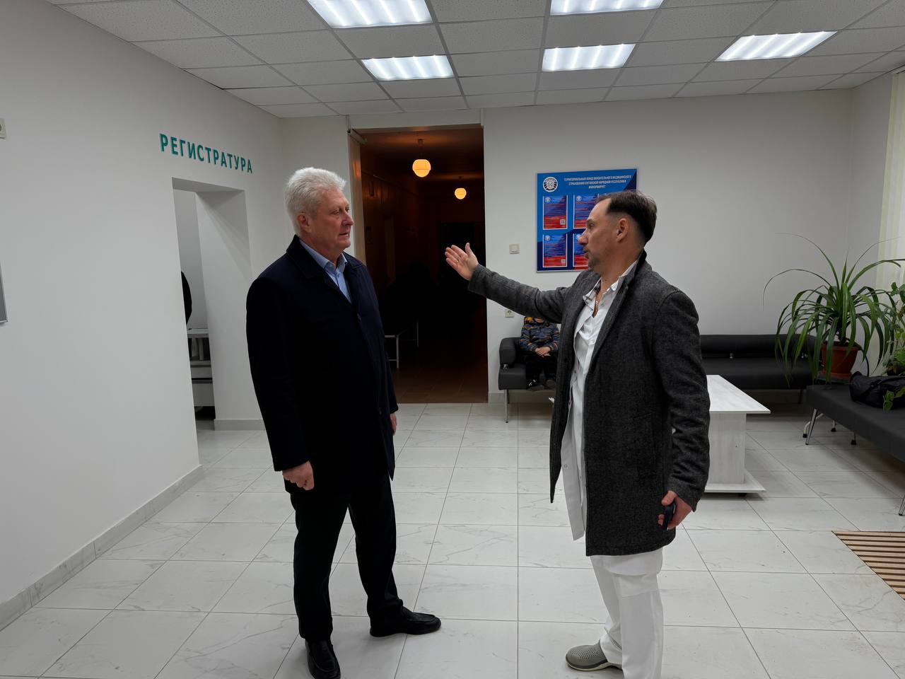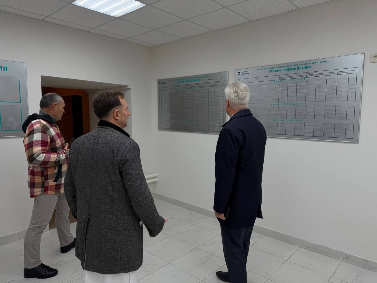 Посетил Краснодонскую городскую стоматологию, где осмотрел помещения после ремонта. Отремонтированы входная группа, холл, регистратура и кабинета первичного приема.