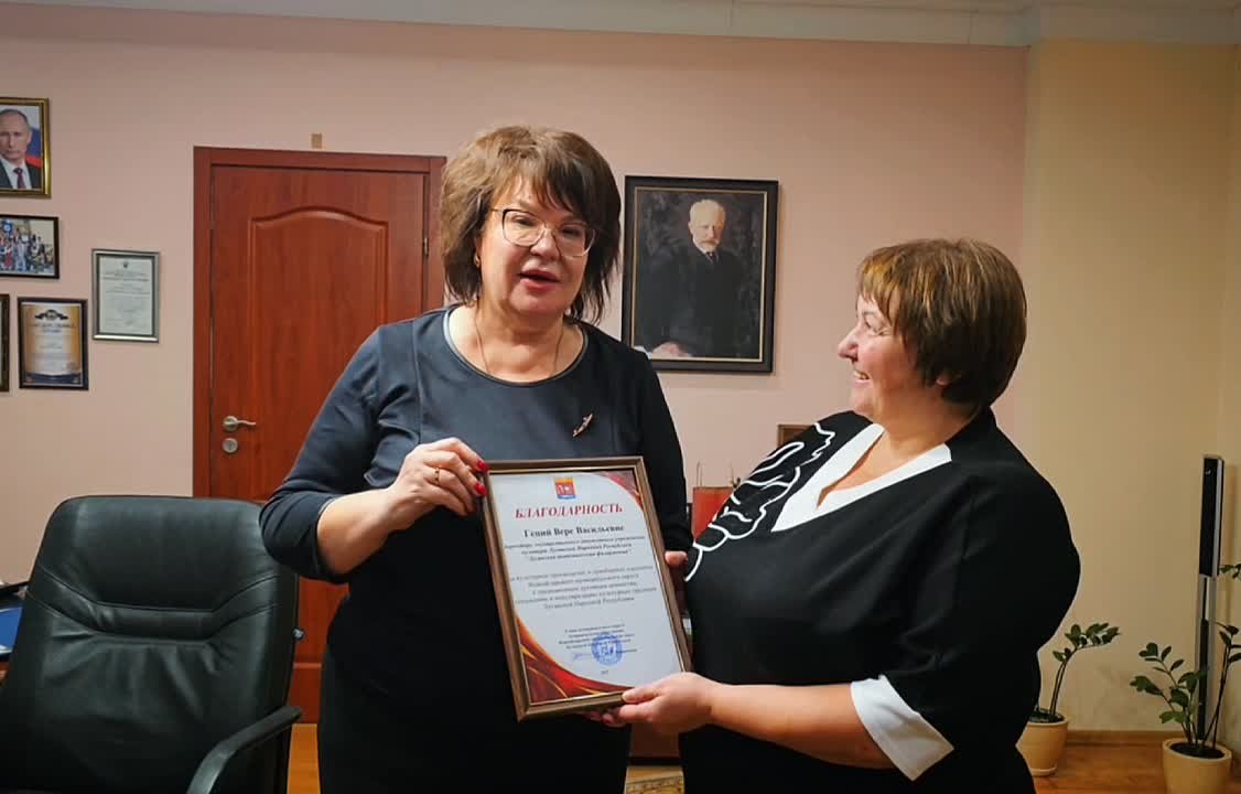 Марина Филиппова: В стенах Луганской академической филармонии вручила Благодарность Главы Новоайдарского округа директору филармонии, заслуженному деятелю искусств РФ Вере Геций