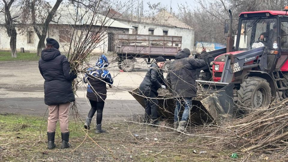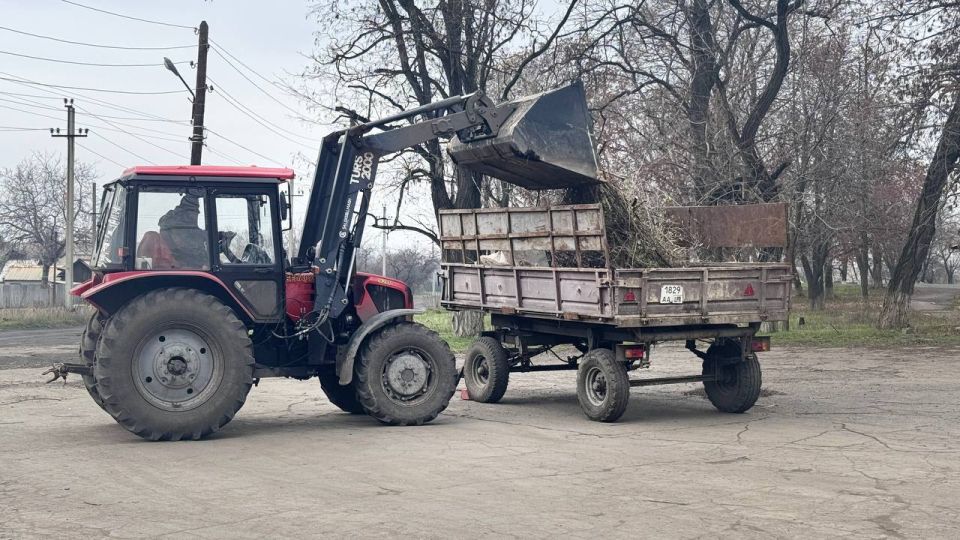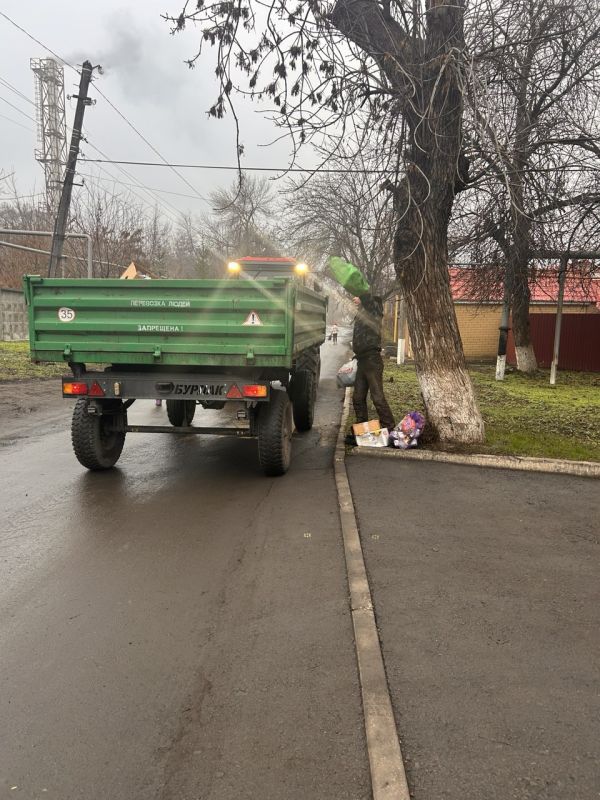 Сегодня сотрудники МУП «ЖЭК» г. Ровеньки совместно с работниками отдела жизнеобеспечения пгт Дзержинский провели работы по очистке территории поселка
