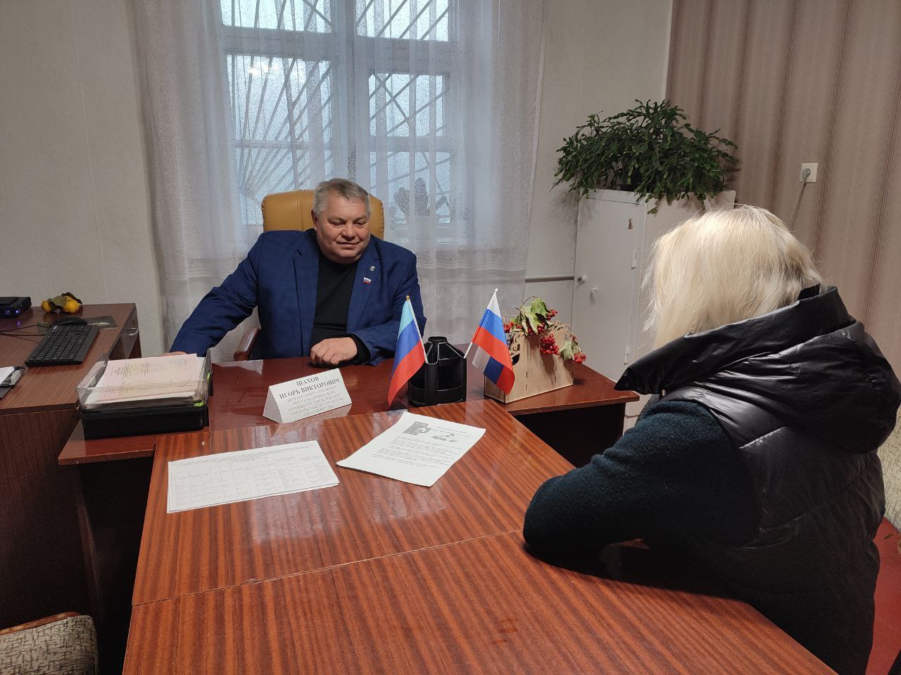 В рамках Декады приемов граждан, приуроченной к 24-летию партии «Единая Россия», Заместитель Секретаря Краснолучского местного отделения «Единой России», Заместитель Руководителя фракции Единой России в Совете округа Игорь Викторович Шахов провёл прием жителей города Вахрушево.