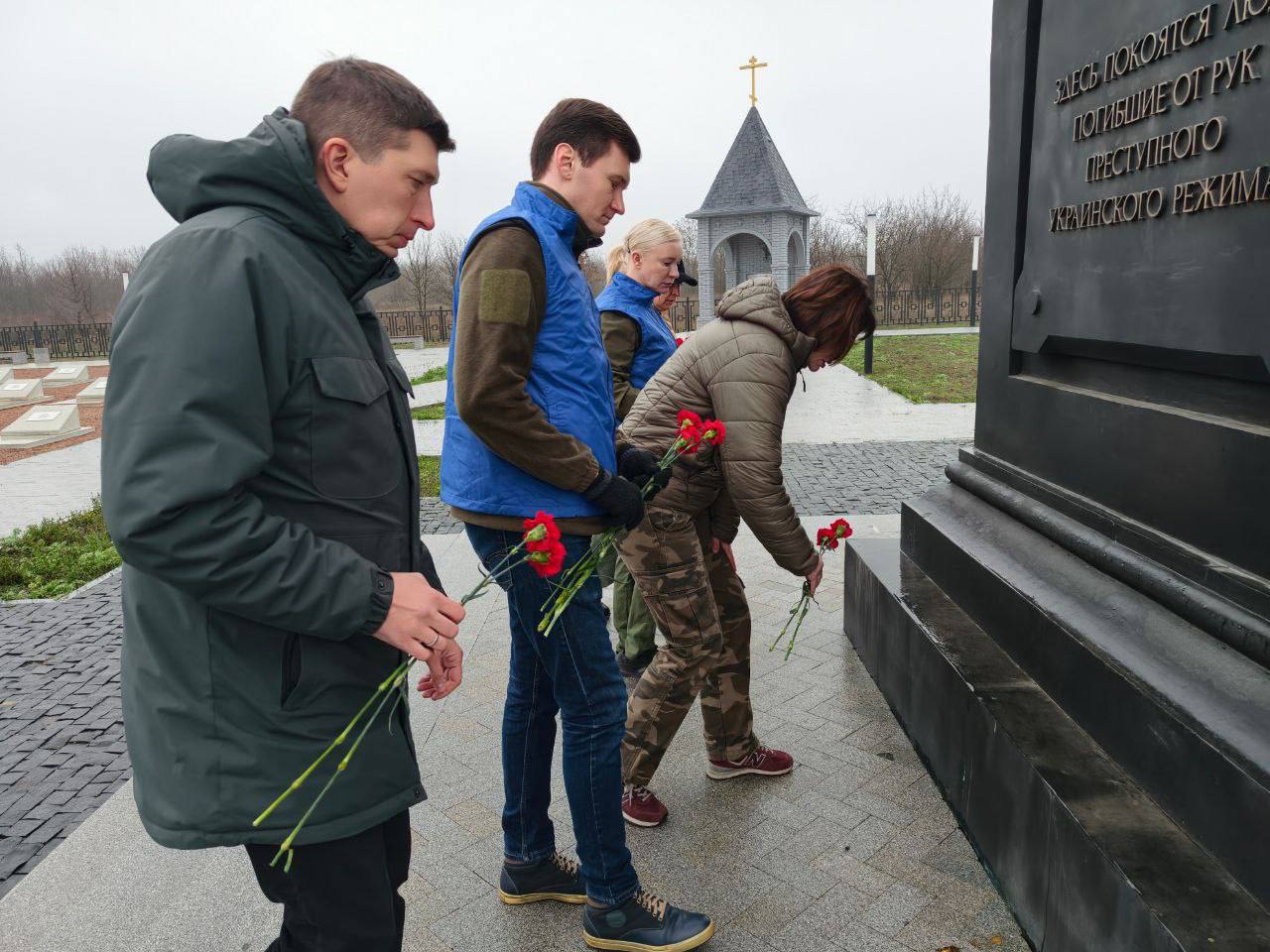 Совместно с Уполномоченным по правам человека в ЛНР Анной Сорокой начали рабочий день с возложения цветов к мемориалу