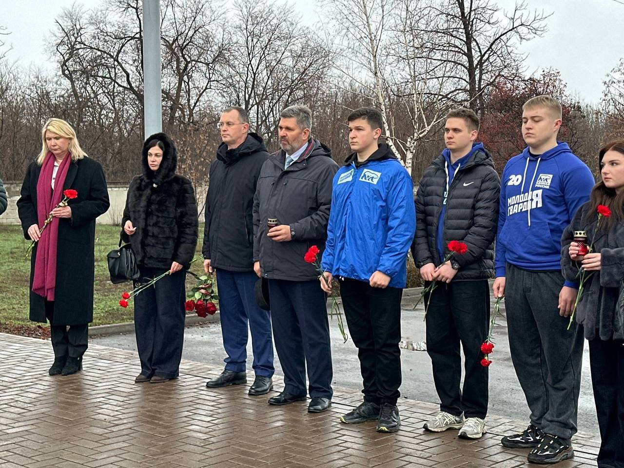 В Алчевске молодогвардейцы вместе с заместителем главы администрации Сергеем Зайцевым, студентами и сотрудниками ДонГТУ почтили память павших у городского мемориала.
