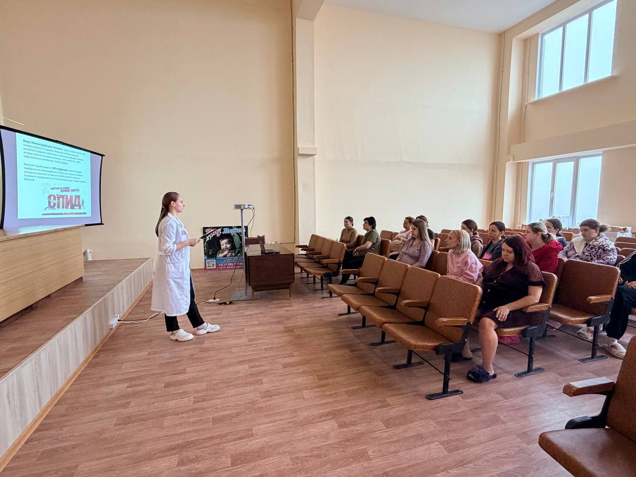 ВИЧ инфекция -это не приговор, в том числе и для счастливого родительства! Под таким лозунгом прошла ознакомительная лекция для беременных в ГБУЗ «АЦМИР» ЛНР . Было освещено множество вопросов и актуальных проблем связанных с ВИЧ в акушерстве. Главное из лекции: