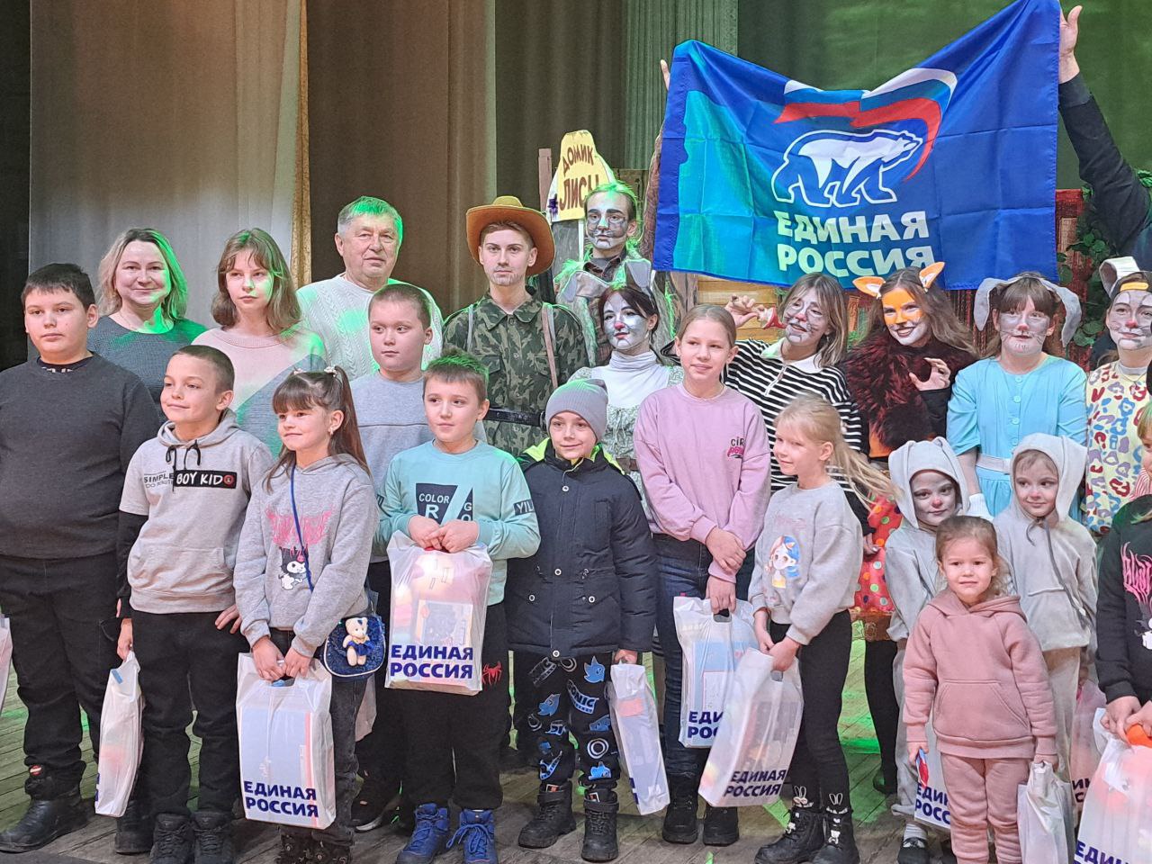 В конце представления малыши смогли побывать на сцене в «домике Лисы» и сфотографироваться с героями «Зайки Зазнайки». Также исполком Свердловского местного отделения Партии «Единая Россия» приготовил для ребят подарки. Мягкие игрушки и наборы для творчества Виктор Николаевич и Светлана Юрьевна вручили ребятам с пожеланиями хорошего настроения в преддверии наступающего Нового года.