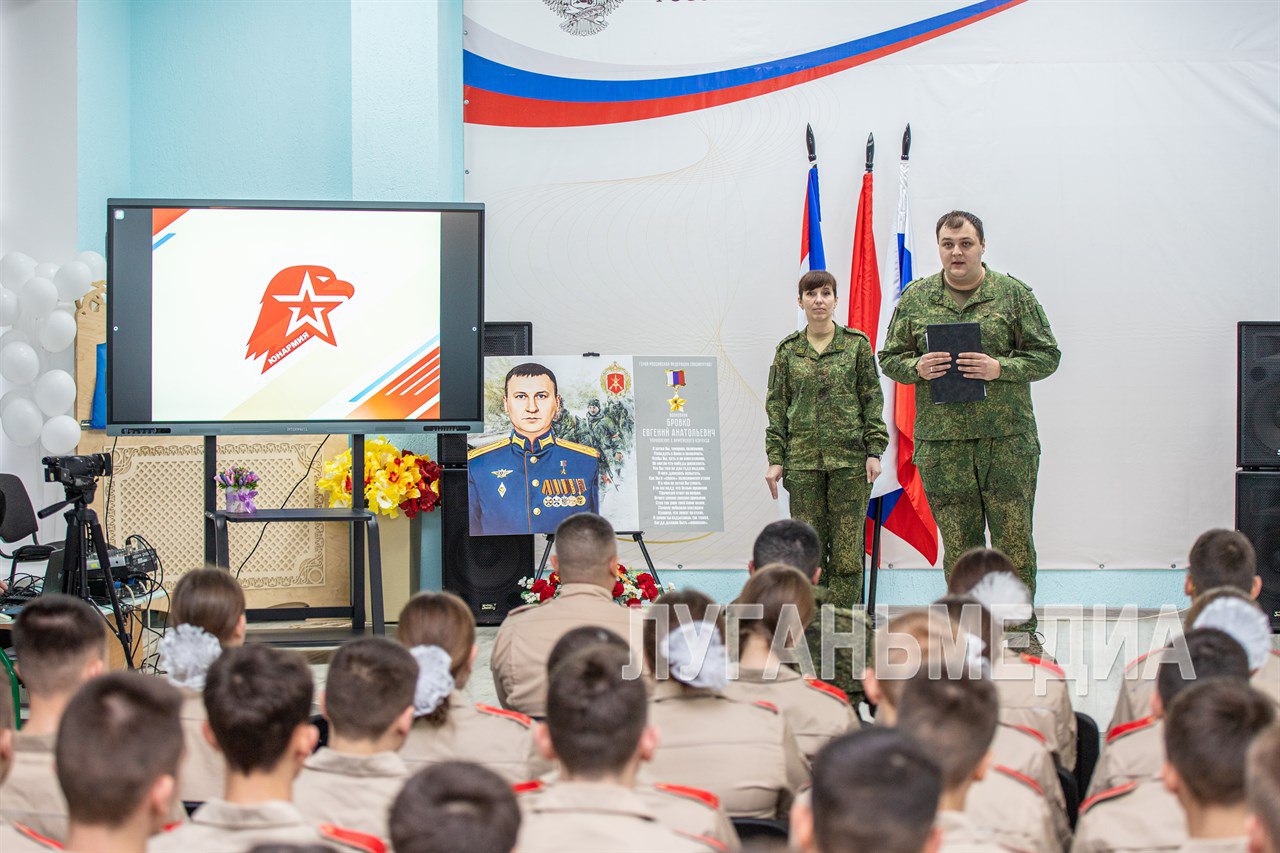 В Луганском экономико-правовом лицее-интернате имени героев «Молодой гвардии» прошел урок мужества для юнармейцев-лицеистов на базе передвижной выставки «Герои России». Организаторами мероприятия выступили военнослужащие 3-й общевойсковой армии совместно с региональным отделением ВВПОД «Юнармия».