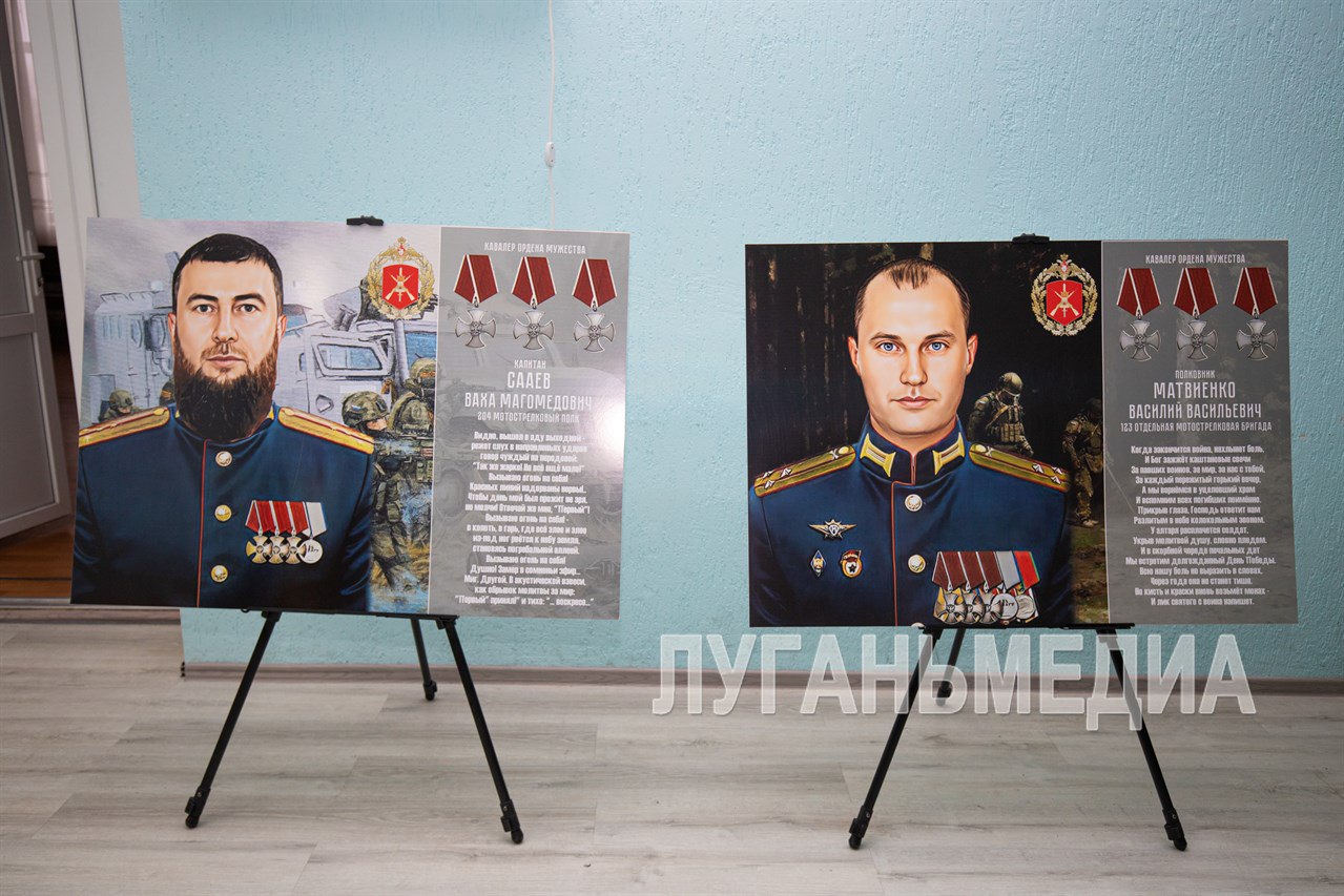 На уроке мужества участникам поведали об офицерах Российской Армии, выполнявших боевые задачи на территории ЛНР. Выставка представила более 20 портретов героев России, которые с непоколебимой честью и чувством долга защищали границы родной земли.