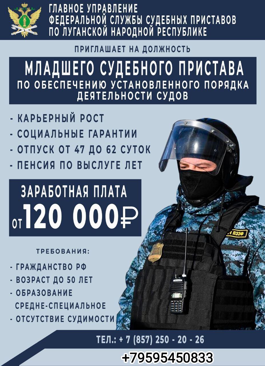 Отделение судебных приставов по Беловодскому р-ну ГУ ФССП России по Луганской Народной Республике информирует о проведении набора на должность младшего судебного пристава по обеспечению установленного порядка деятельности судов