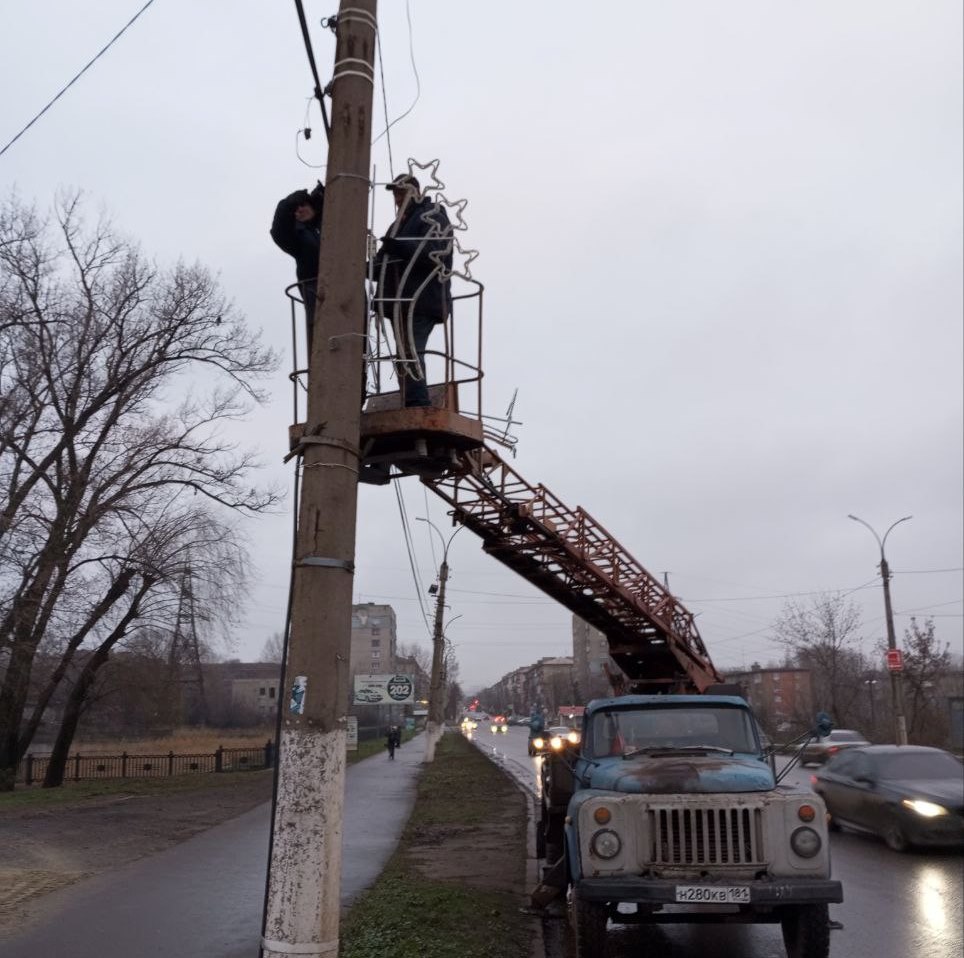 МУП «Служба дорожного хозяйства и благоустройства города Алчевска ЛНР» проводит работы на территории города по уборке и благоустройству (ул. Чапаева, ул. Менжинского), монтажу уличной иллюминации (ул. Ленина), монтажу городской елки (пл. Советская), уборке свалок (ул. Менжинского), ямочному ремонту (пр. Металлургов), восстановлению наружного освещения города.