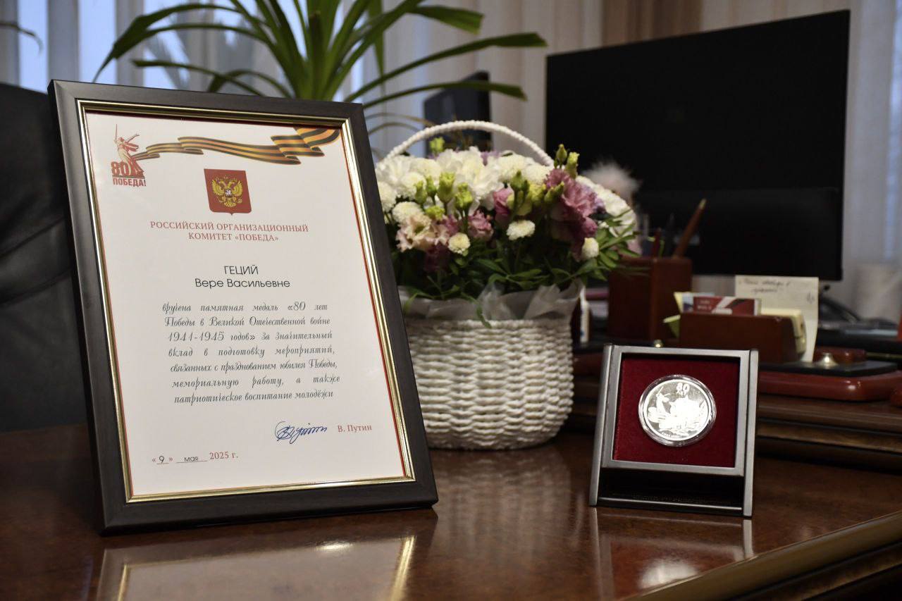 Эта высокая награда Российского организационного комитета «Победа» при Президенте РФ — заслуженная оценка её значительного вклада в подготовку юбилейных мероприятий, направленных на сохранение памяти о подвиге нашего народа и воспитание патриотизма у молодёжи.