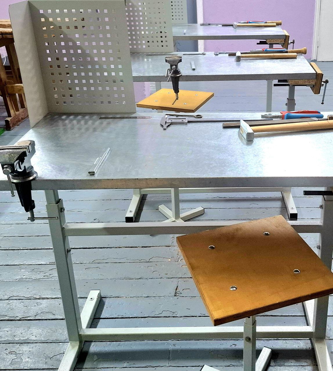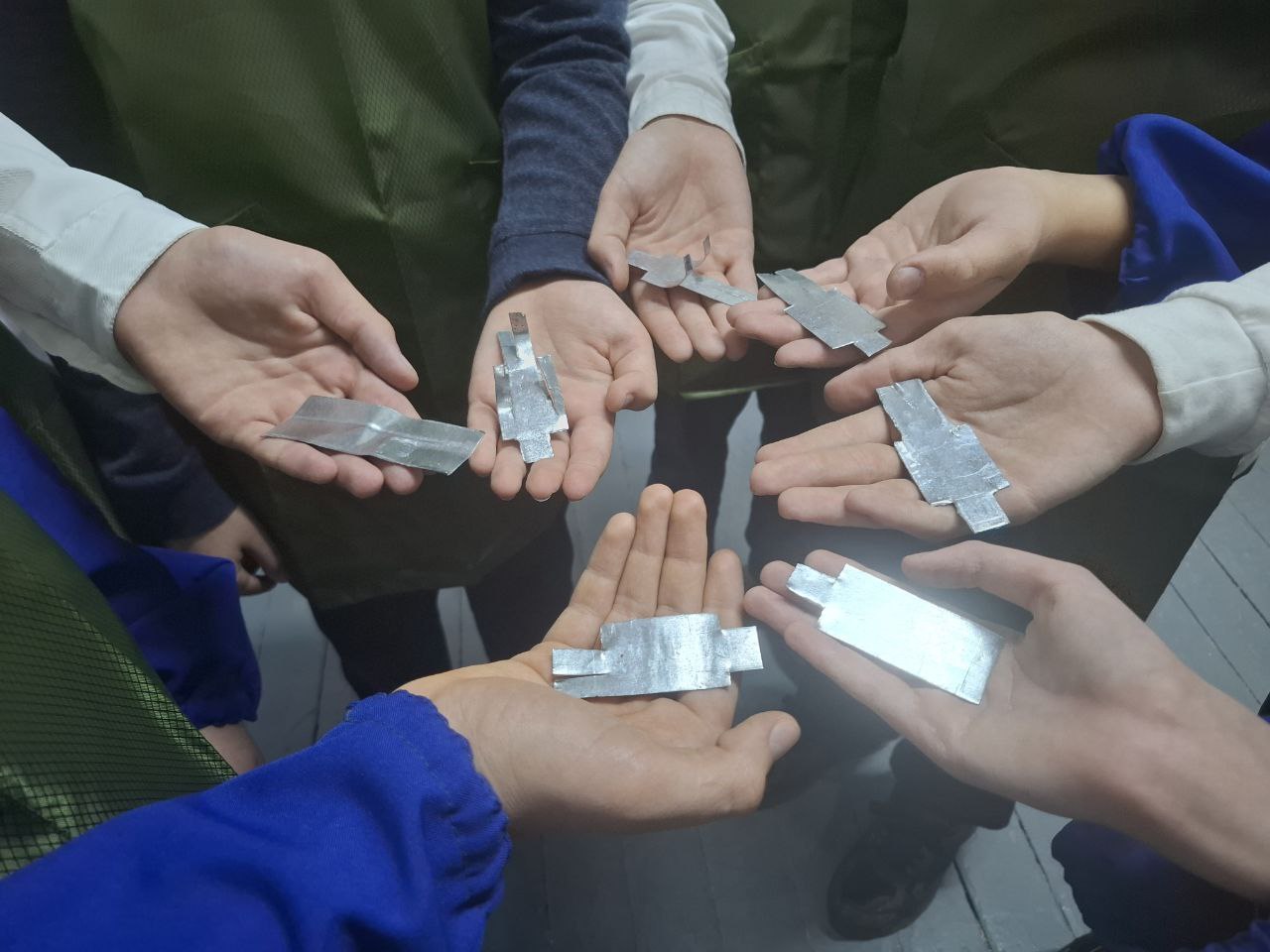В рамках мастер-класса ребята изготовили с помощью слесарных ножниц, линейки, молотка, кернера, сверлильного станка, напильника и наждачной бумаги подставку из металла «Человек».