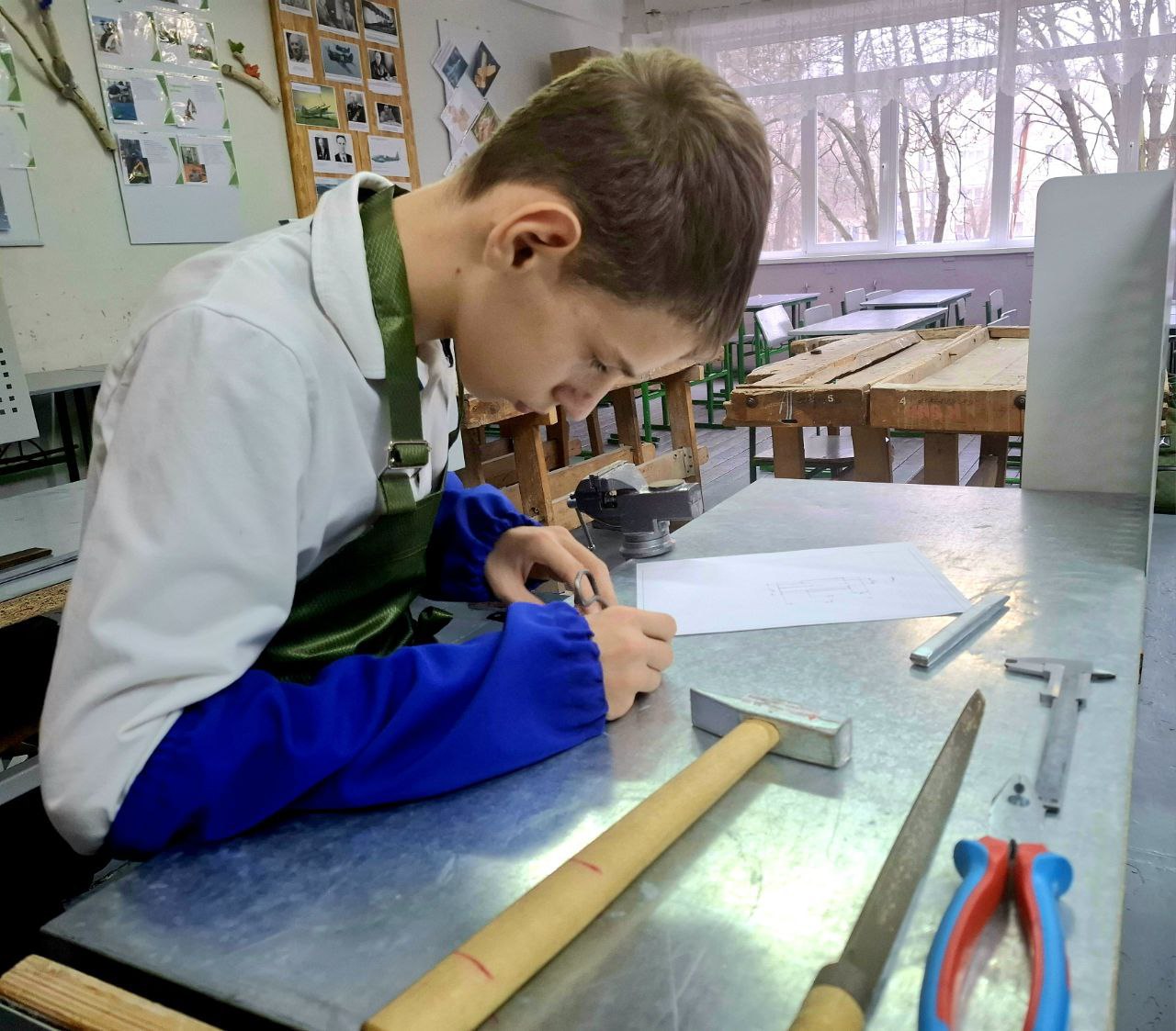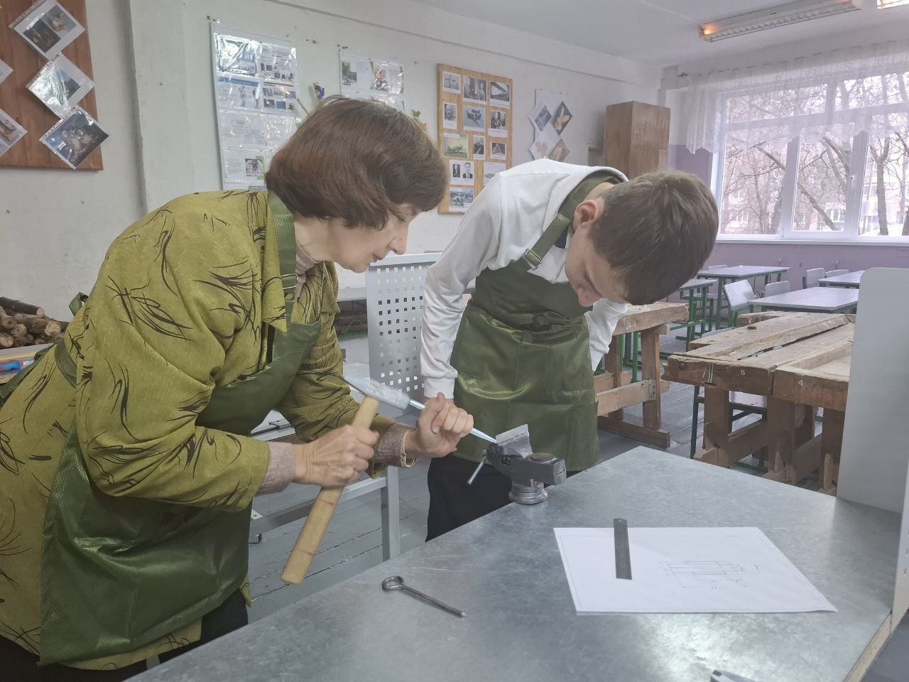 На базе Краснолучского учебно-воспитательного комплекса № 5 «Перспектива» имени Героя СВО М. В. Снитко» в 7 классе состоялся мастер-класс по изготовлению изделий из тонколистового металла.