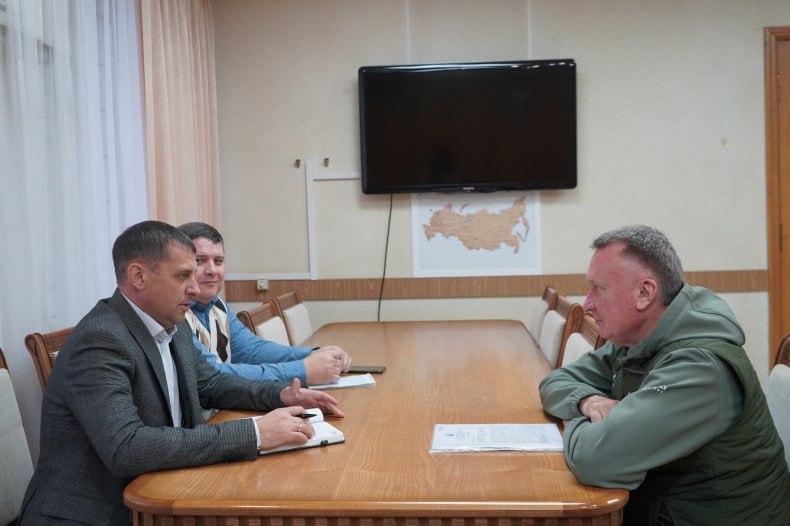 Временно исполняющий полномочия Главы Свердловского муниципального округа ЛНР Игорь Ковальчук провел рабочую встречу с руководителем делегации Красноярского края в нашем округе Виталием Панасенко и руководителем группы врачей из Красноярского края Сергеем Скрипкиным.