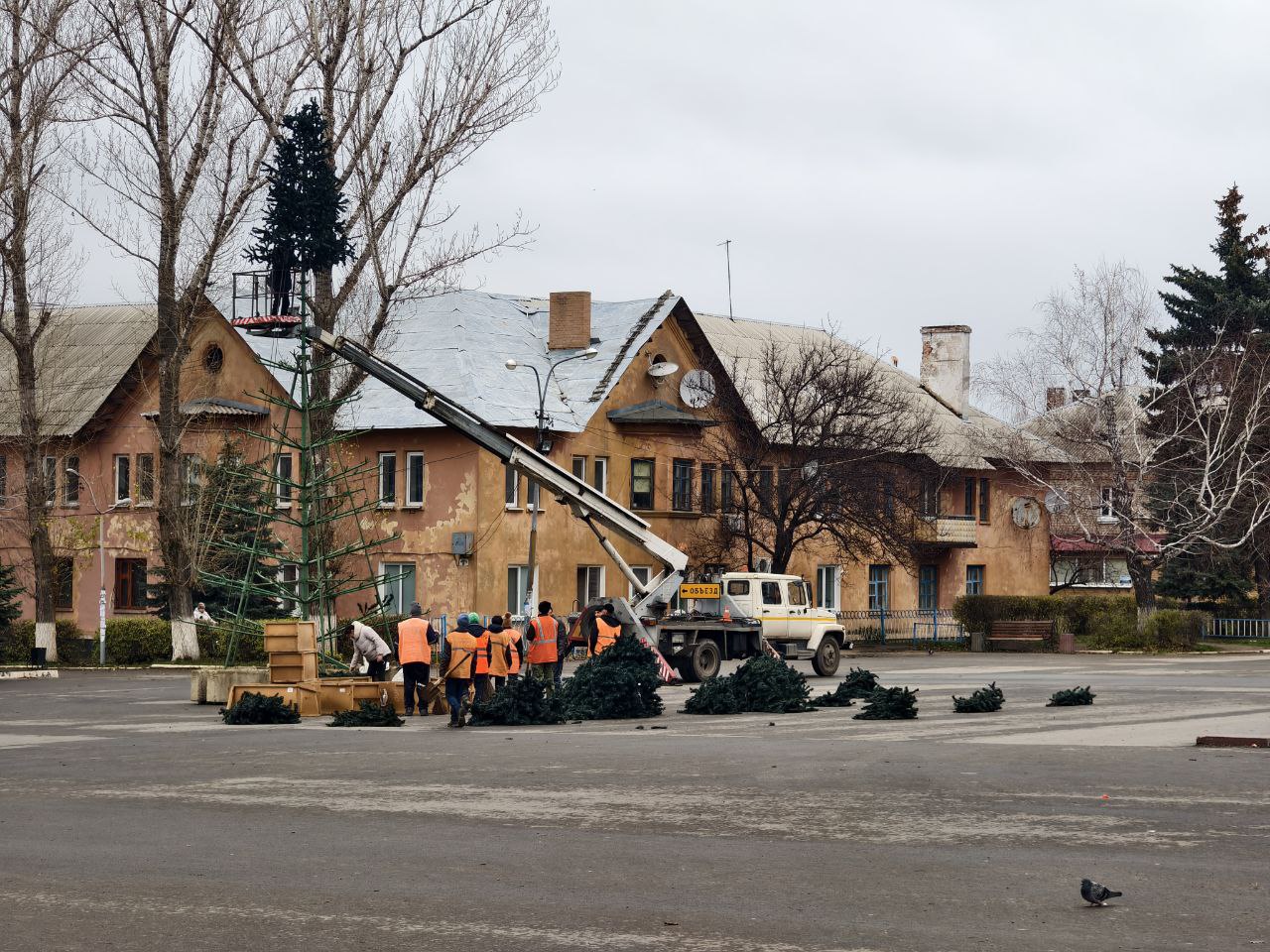 В Лутугино приступили к монтажу главной новогодней ёлки
