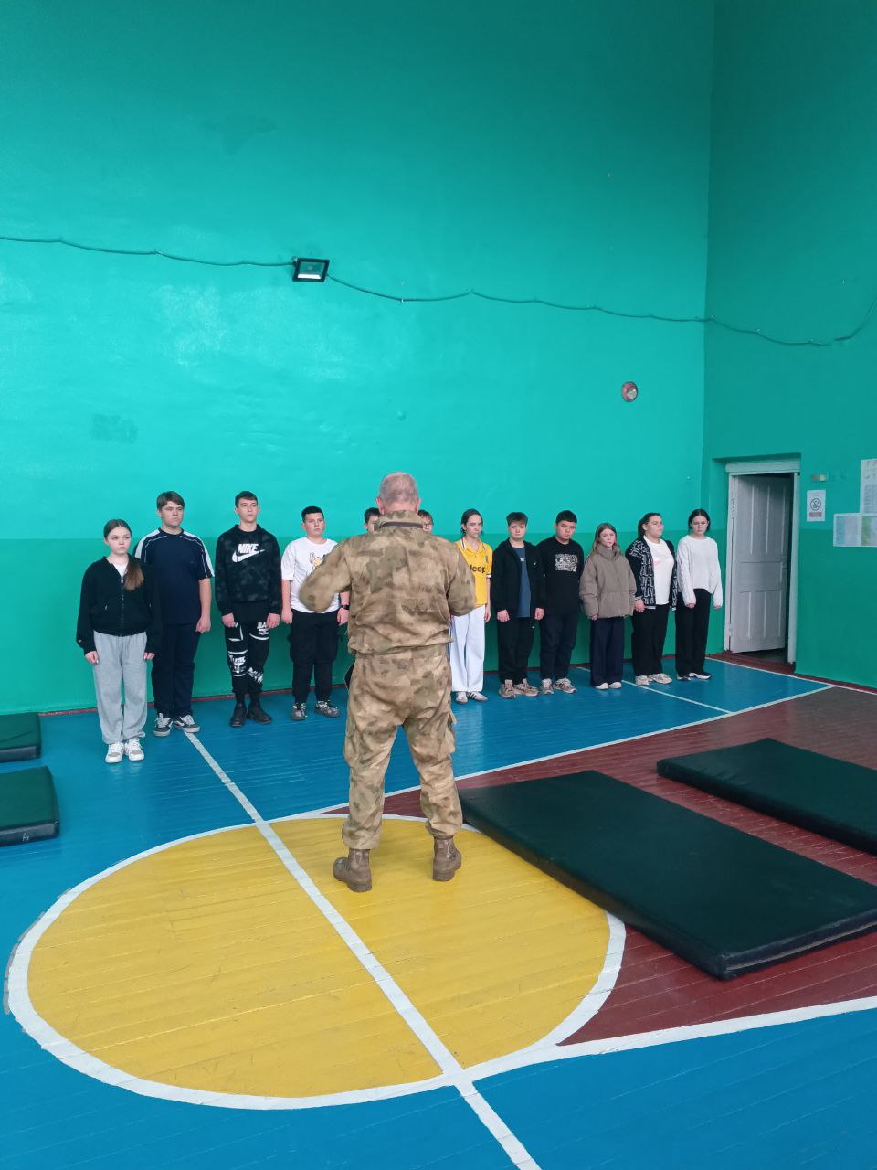 Инструктор Сергей Сергеенко казак «Станичное Казачье общество "Станица Луганская"» провел занятие для учеников в учебно-воспитательном комплексе села Валуйское.