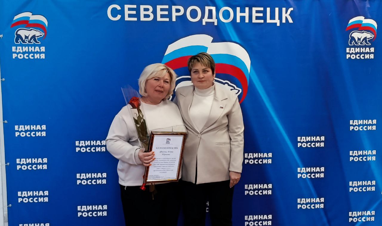 Благодарность вручила заместитель Председателя Совета городского округа город Северодонецк, заместитель руководителя фракции партии «ЕДИНАЯ РОССИЯ» в Совете Инна Абраменко.