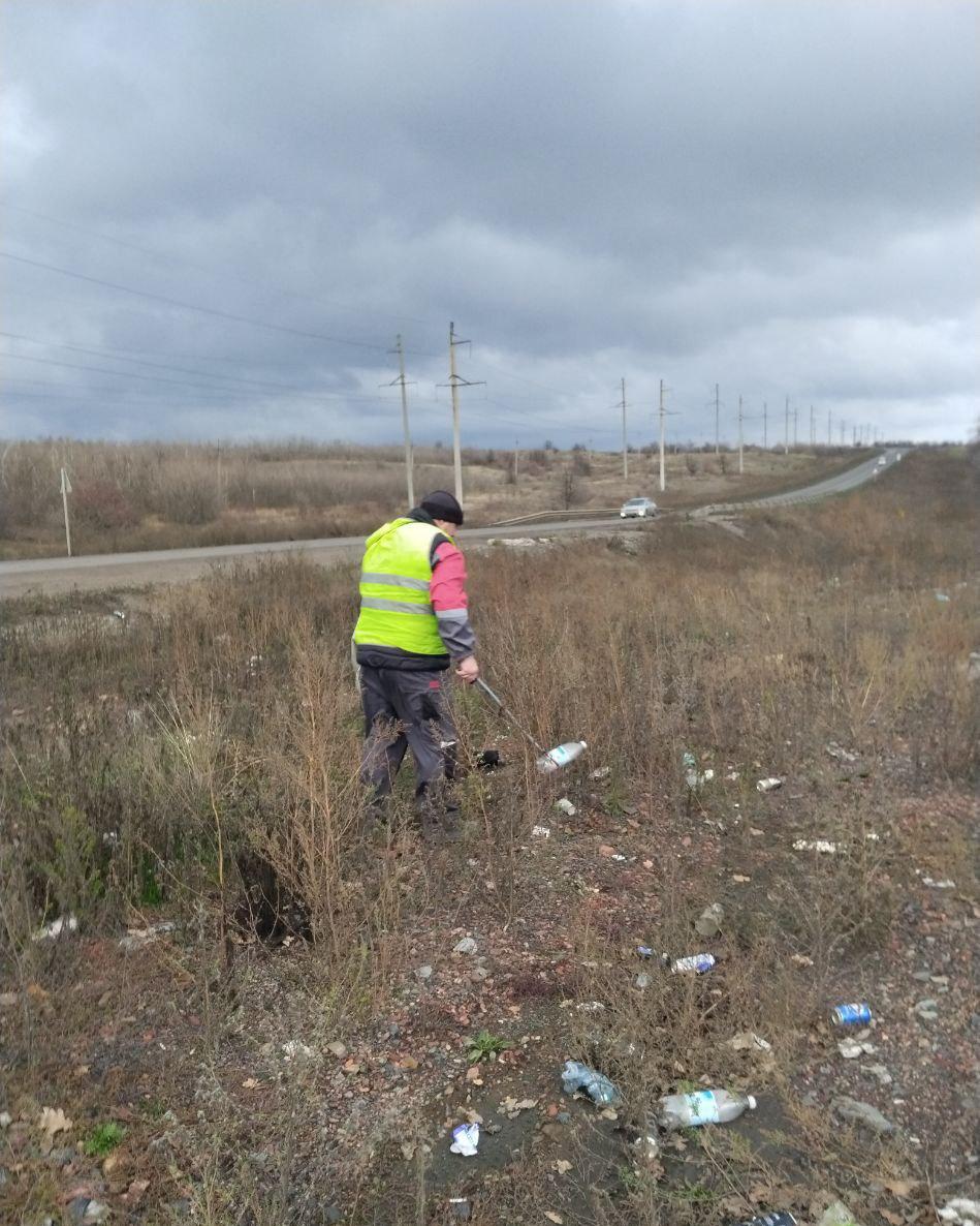 На трассе Луганск — Лутугино — Красный Луч — граница ДНР провели работы по очистке обочин от мусора