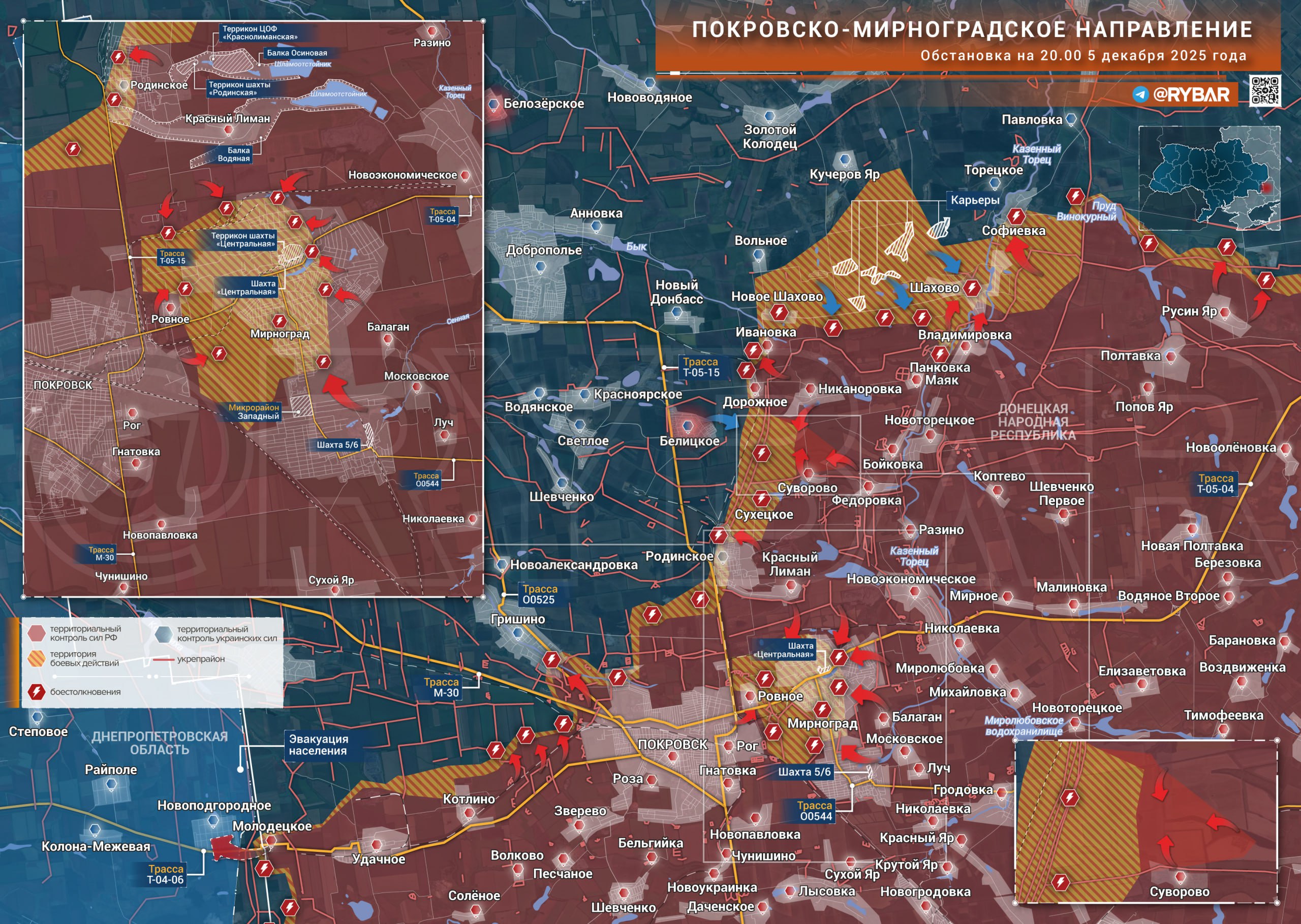 На Покровско-Мирноградском направлении ВС РФ добивают противника в Мирнограде и теснят в полях севернее Покровска.