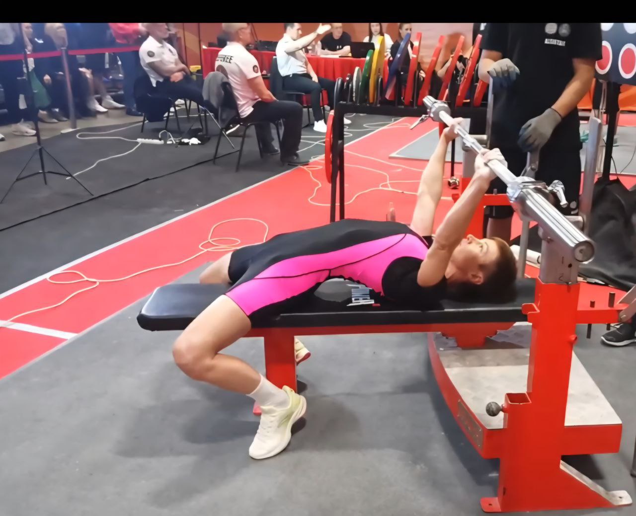 Народный жим 1/2 собственного веса (103 повторения) — установила мировой рекорд!