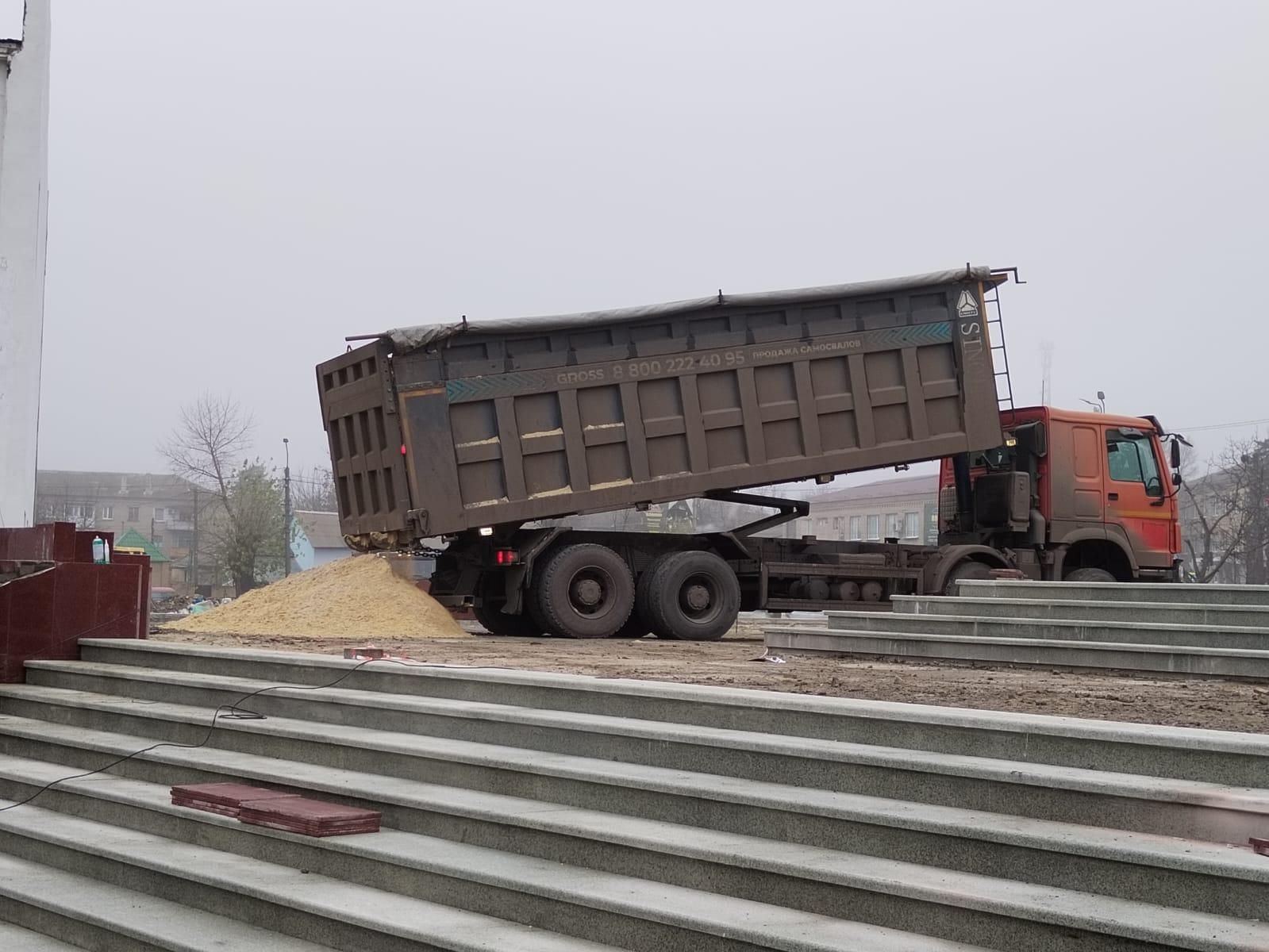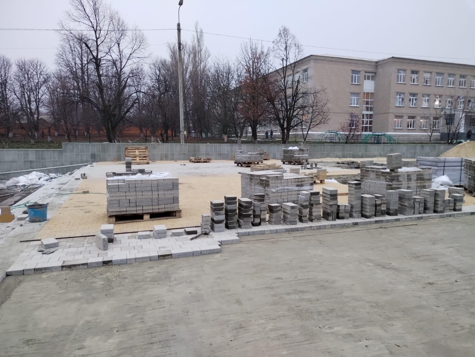 На территории площади Республики Коми в Ровеньках продолжаются восстановительные и строительные работы.