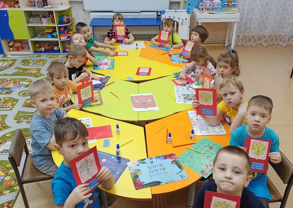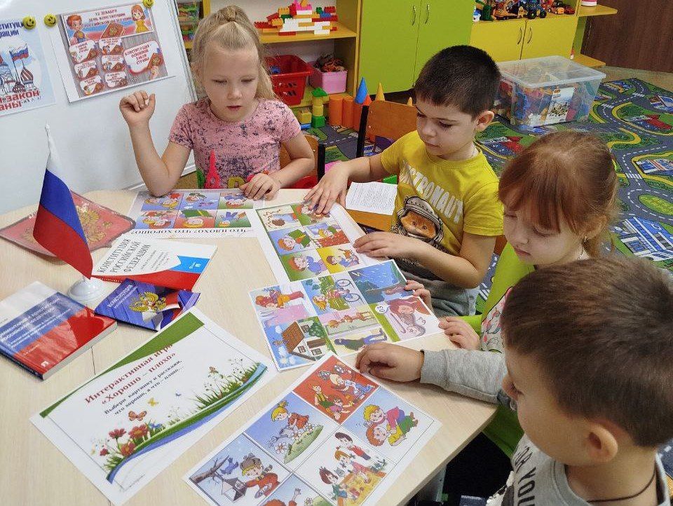 Воспитанники ознакомились с понятием «закон», «порядок», «право», повторили государственную символику: флаг, герб. Сегодня дети узнали, что Конституция - это самый важный государственный документ.