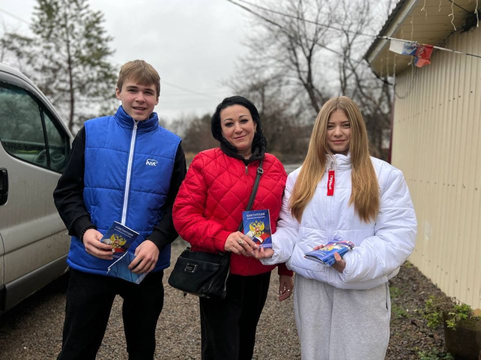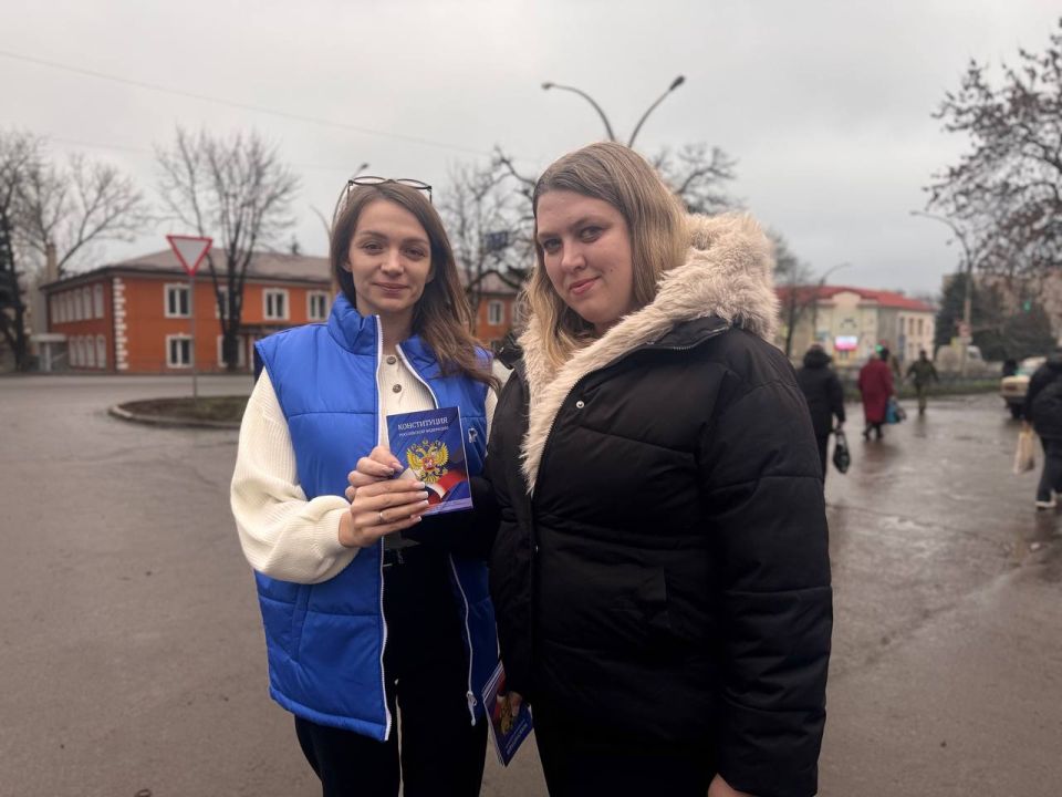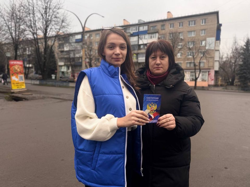 В акции приняли участие активист проекта «Женское движение Единой России» Елена Иванчук, представитель Молодежного парламента при Народном Совете ЛНР София Эртель, члены Молодежного совета при Администрации округа и активисты Движения Первых. Всего было роздано более 100 экземпляров Конституции.