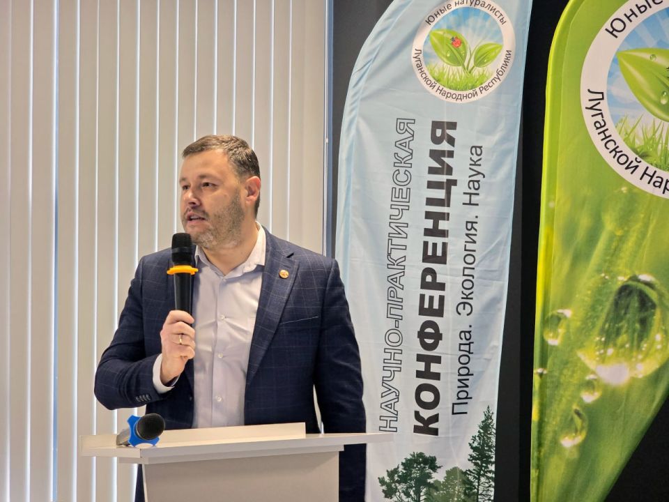 Начальник отдела использования охотничьих ресурсов, животного мира, особо охраняемых природных территорий и объектов Красной книги Минприроды ЛНР Алексей Кайгородов передал участникам конференции слова поддержки от Министра природных ресурсов и экологии Луганской Народной Республики Евгения Крехтунова и всего коллектива ведомства.