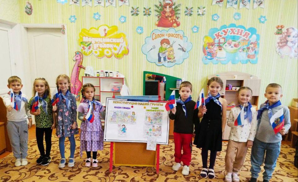 ВДень Конституции Российской Федерации, в яслисаду №1 «Ласточка» прошло познавательное занятие «День Конституции: важные правила большого государства» для воспитанников средней, старшей и подготовительной групп.
