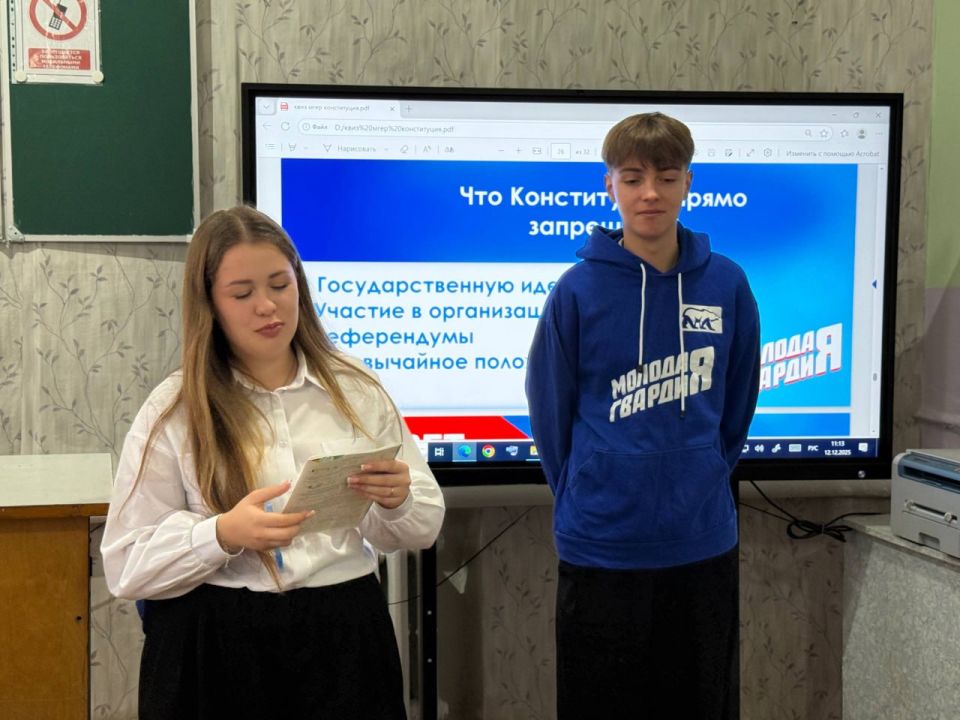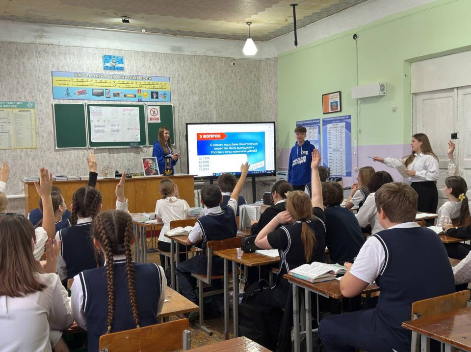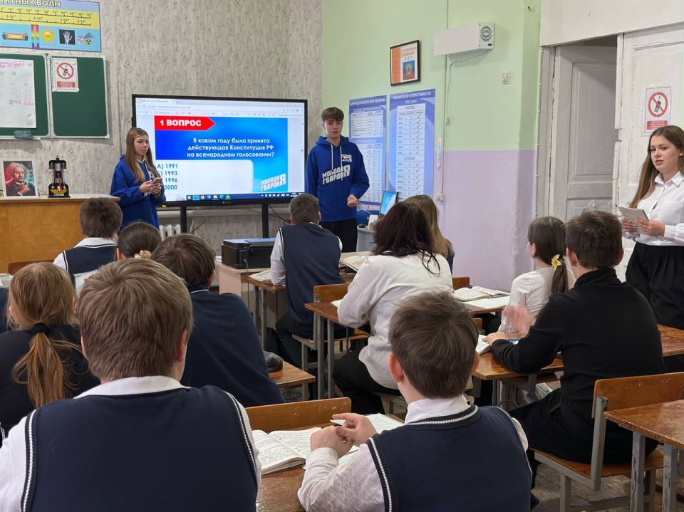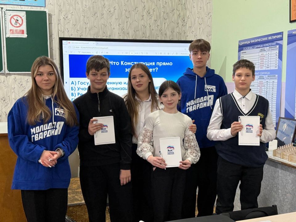 В День Конституции России активисты «Молодой Гвардии Единой России» провели увлекательный квиз для учеников 6-Б класса гимназии №1 им. Л. Литвяк.