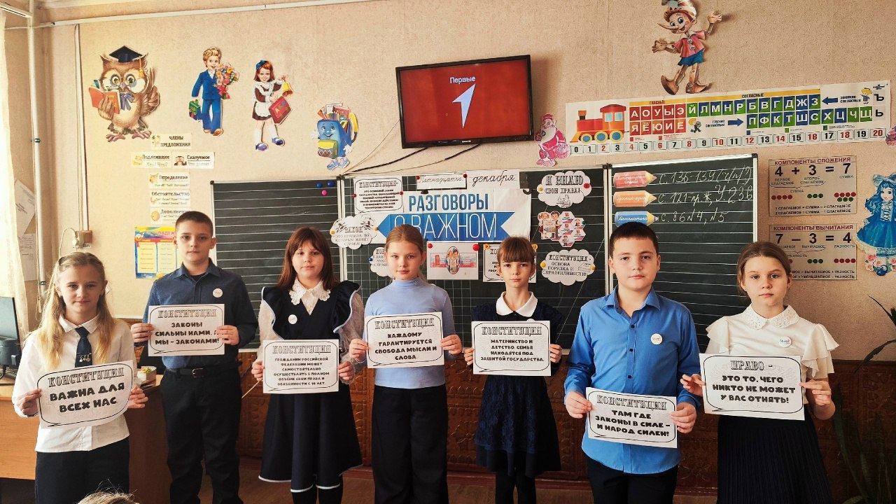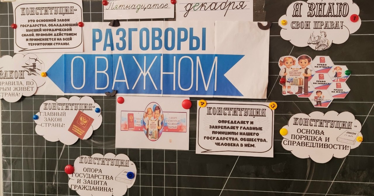 Утро понедельника 15 декабря 2025 года традиционно началось с «Разговоров о важном», на тему: «Закон и справедливость», приуроченные ко Дню Конституции Российской Федерации.