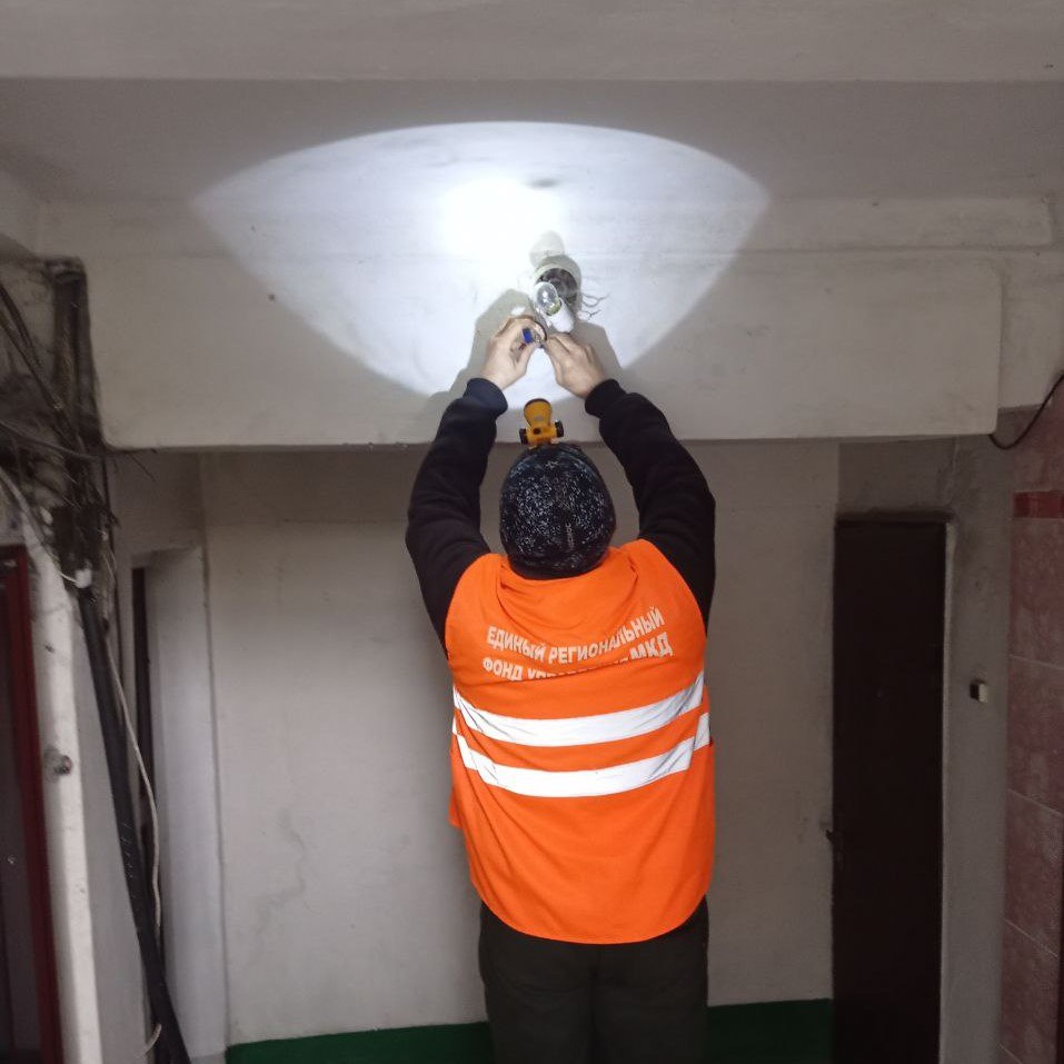 Проведены работы по проверке и восстановлению освещения в подъездах, а также по установке и приведению в рабочее состояние светильников на входах.