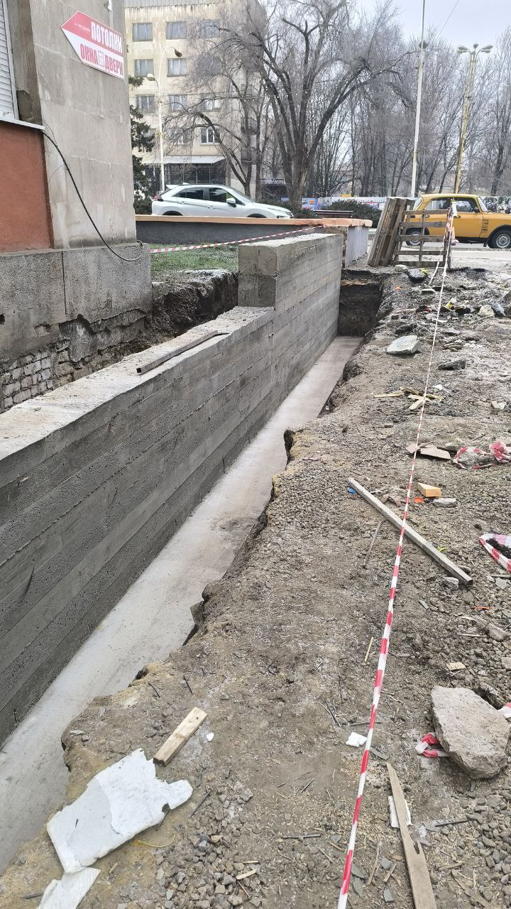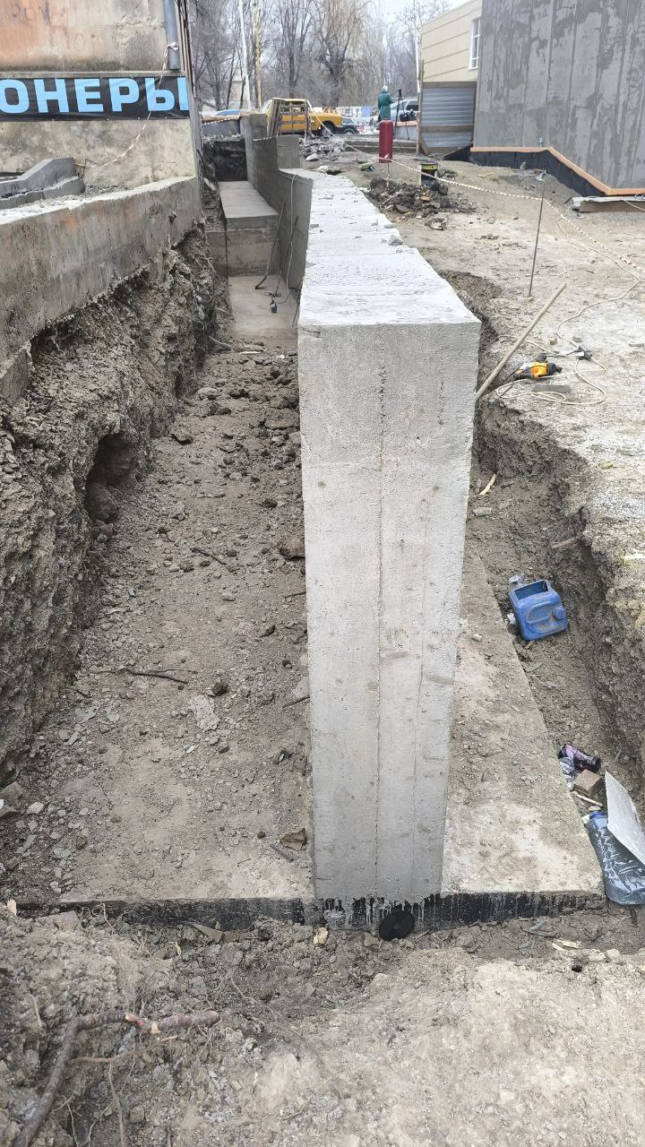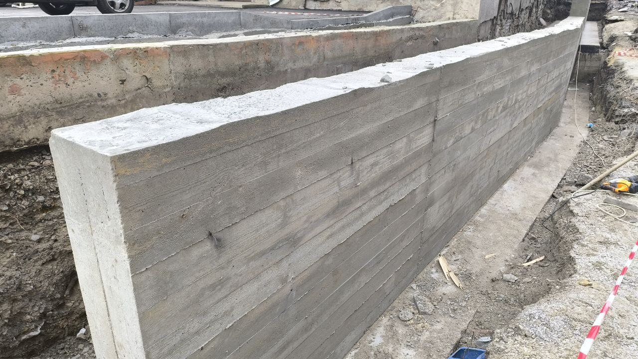 Строители компании «СТИЛЛ» залили бетон и сняли опалубку. В скором времени рабочие приступят к нанесению праймера на поверхность стены. Эта подготовительная процедура необходима для того, чтобы бетон служил дольше. После этого планируется отсыпка песком и щебнем.