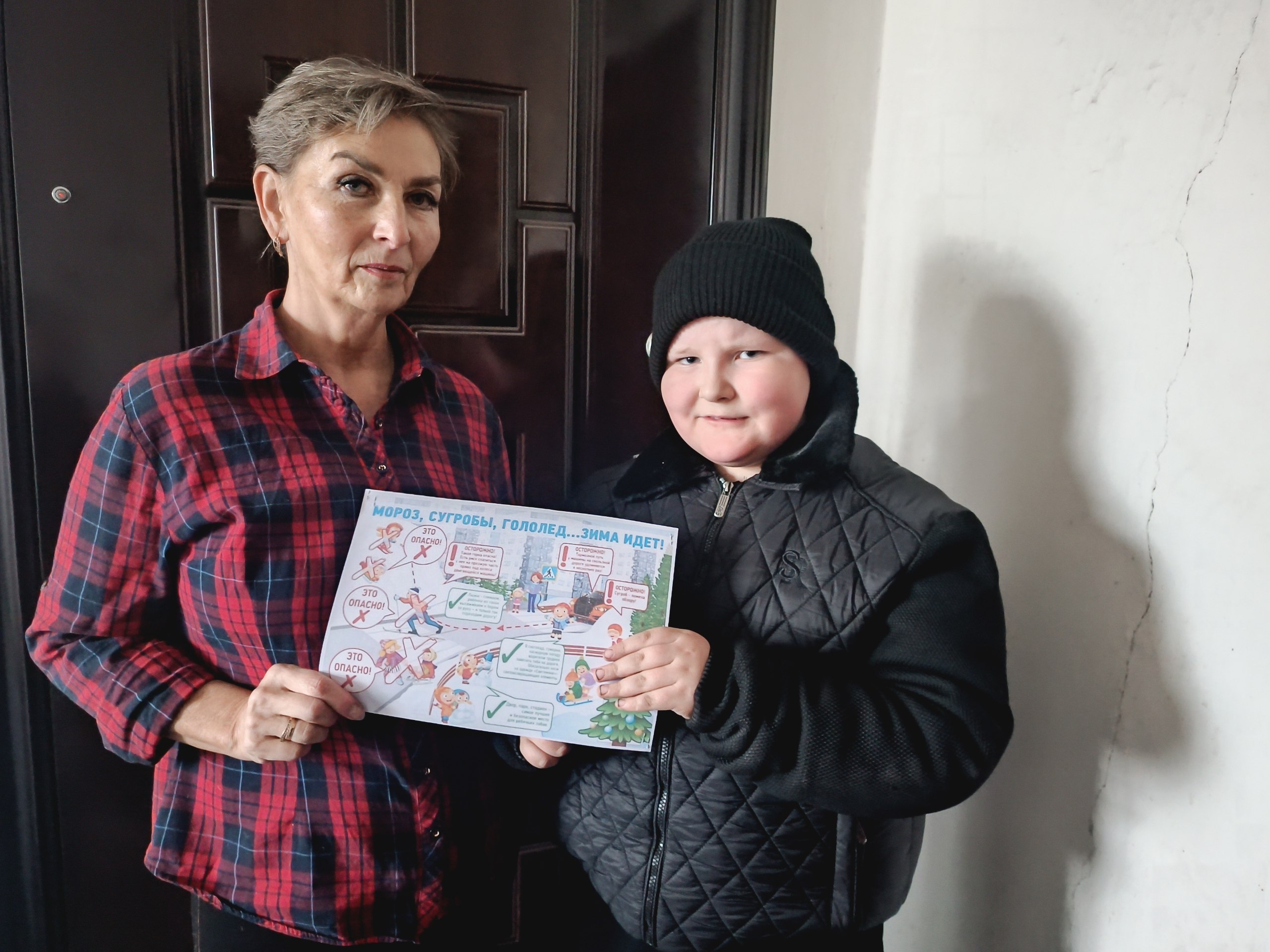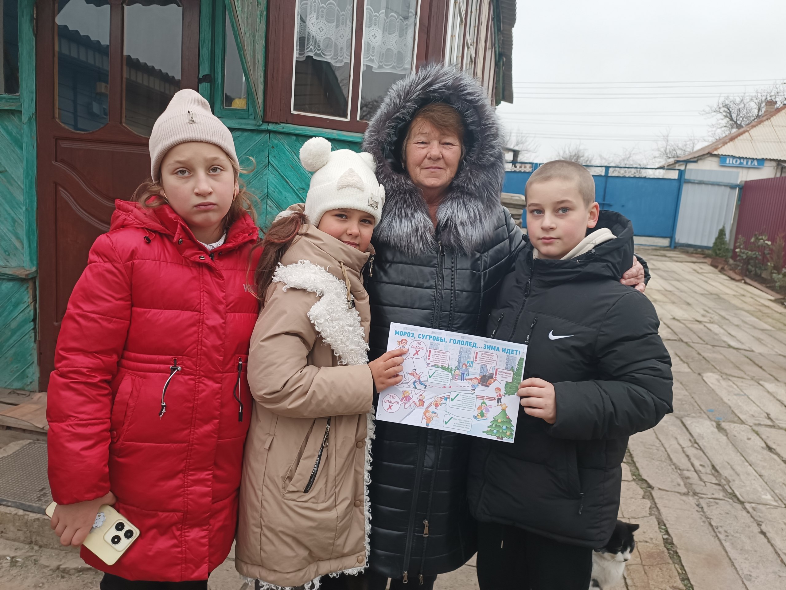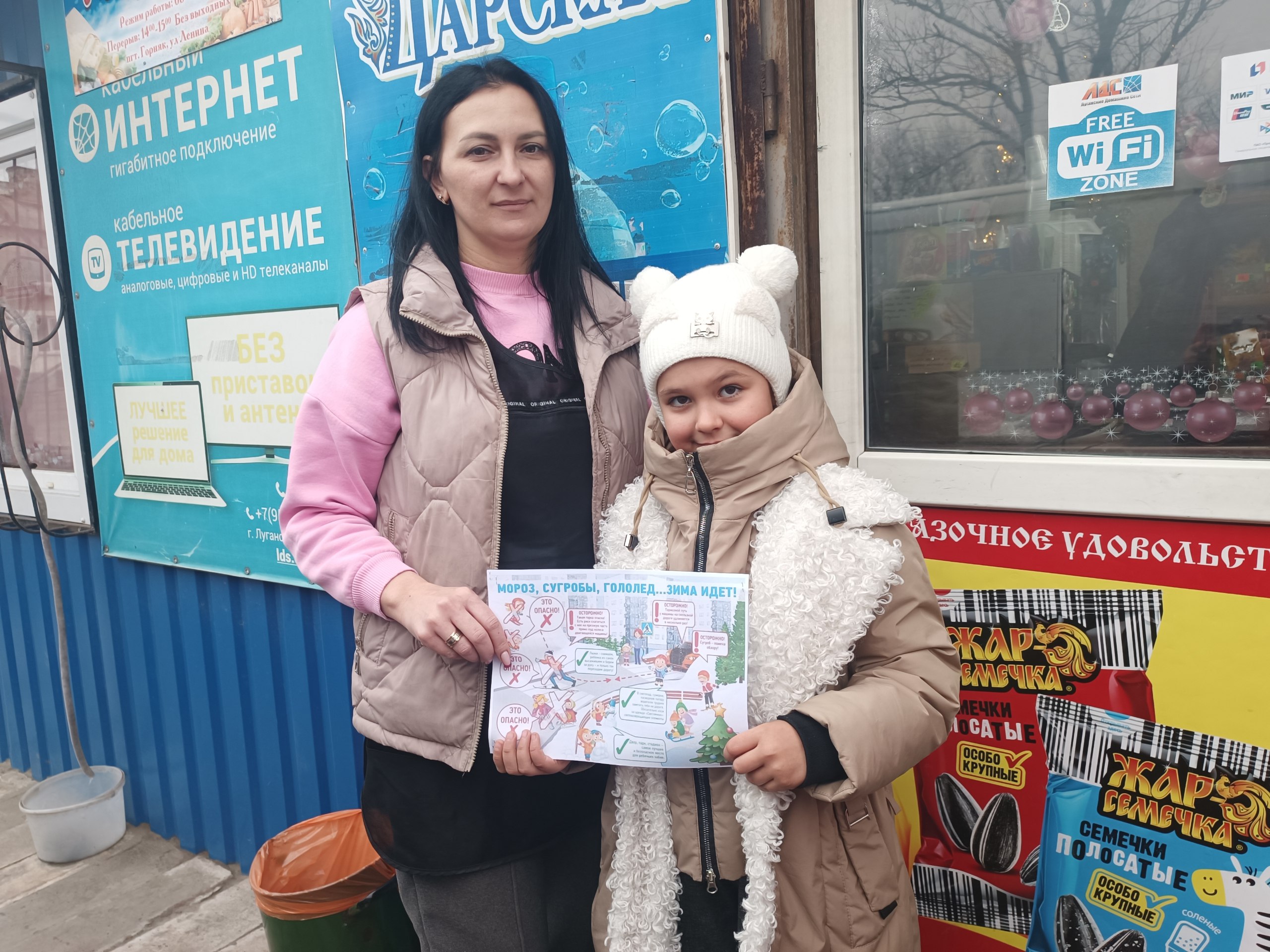 Юные участники акции вместе с педагогами распространяли специально подготовленные памятки «Безопасность детей на дорогах зимой».