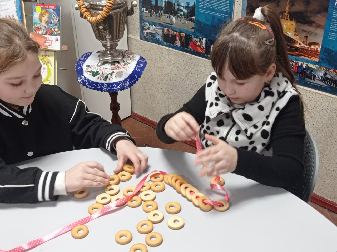 Дети побывали на старинном русском чаепитии, они активно и с интересом участвовали в командных конкурсах и веселых эстафетах: делали вязанки баранок, собирали поговорки о чаепитии, паззлы, а также шишки, чтобы разжечь воображаемый самовар. Вспомнили и о том, как же пили чай известные герои таких любимых книг как «Муха-Цокотуха», «Малыш и Карлсон», «Дядя Фёдор, пёс и кот» и др.
