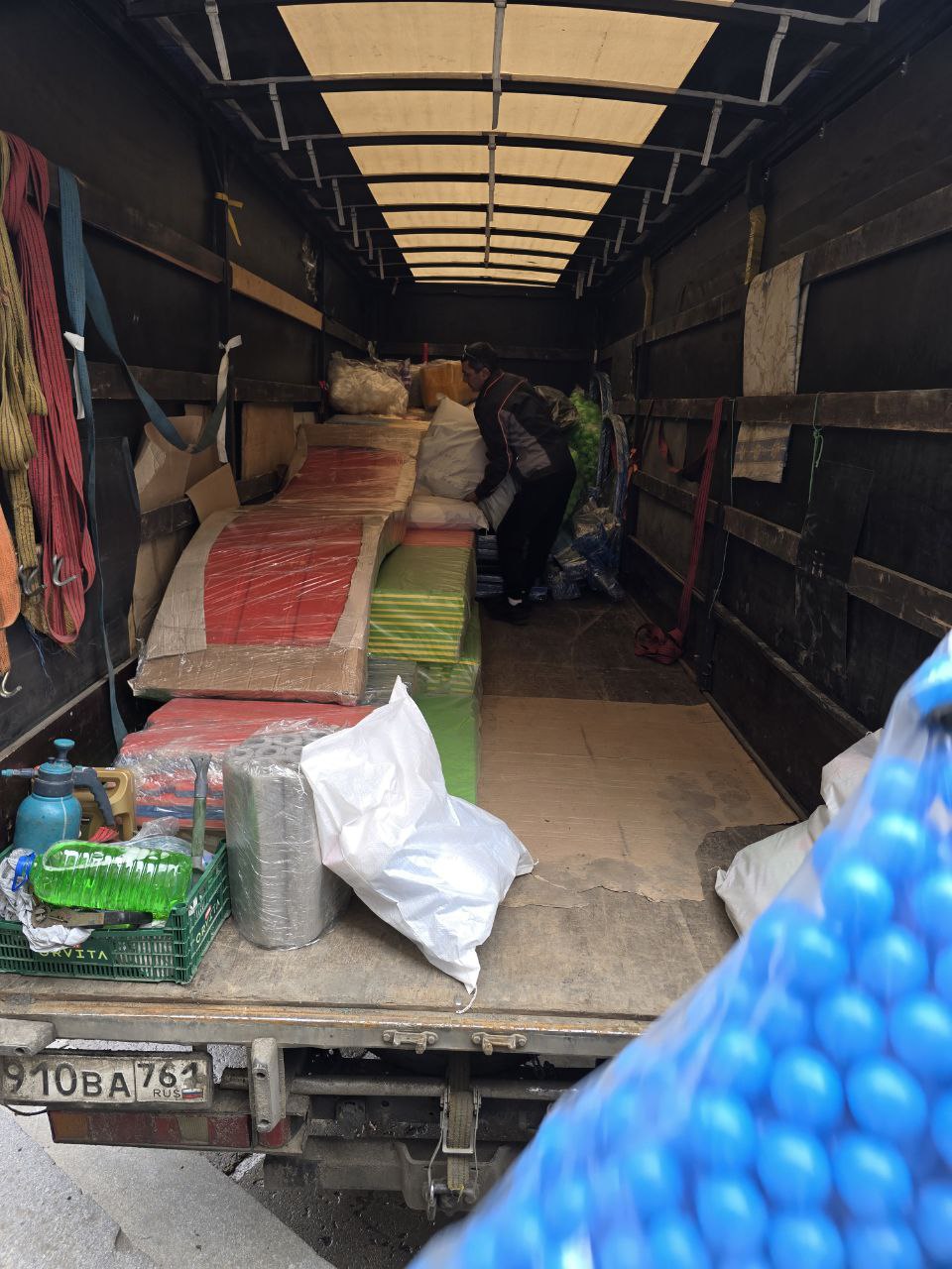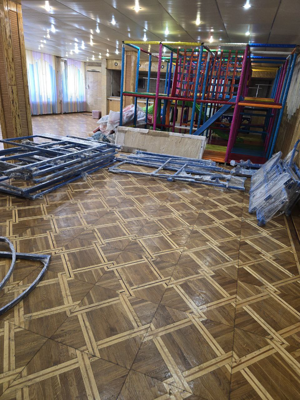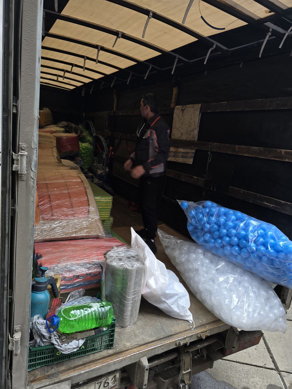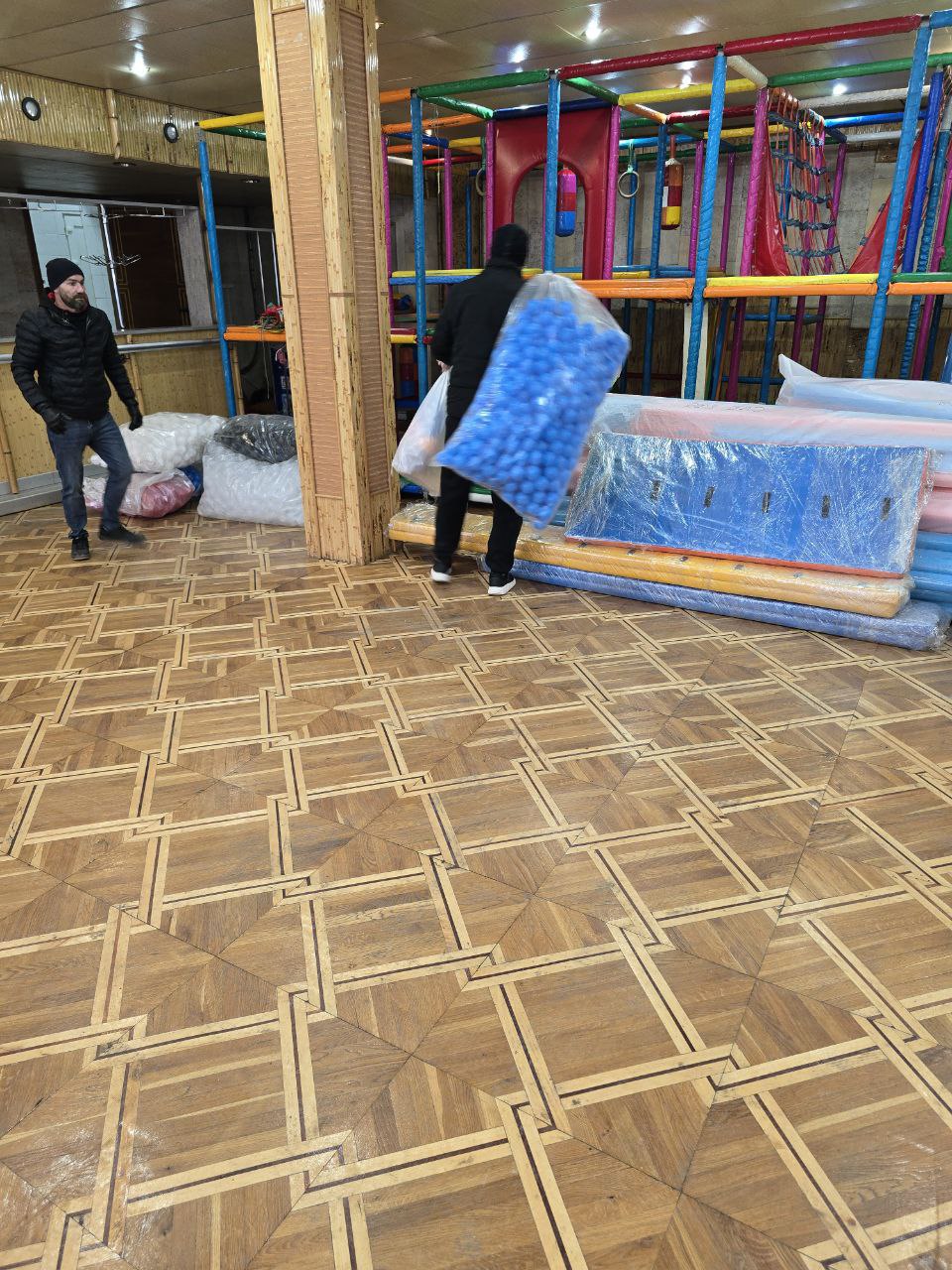 Сегодня в ДК им. Горького было доставлено игровое оборудование. В него входят: металлоконструкция, прыжковые сетки и маты, щиты, препятствия, игровые элементы, декоративное оформление, пластиковая горка, шарики, мягкие модули и маты.