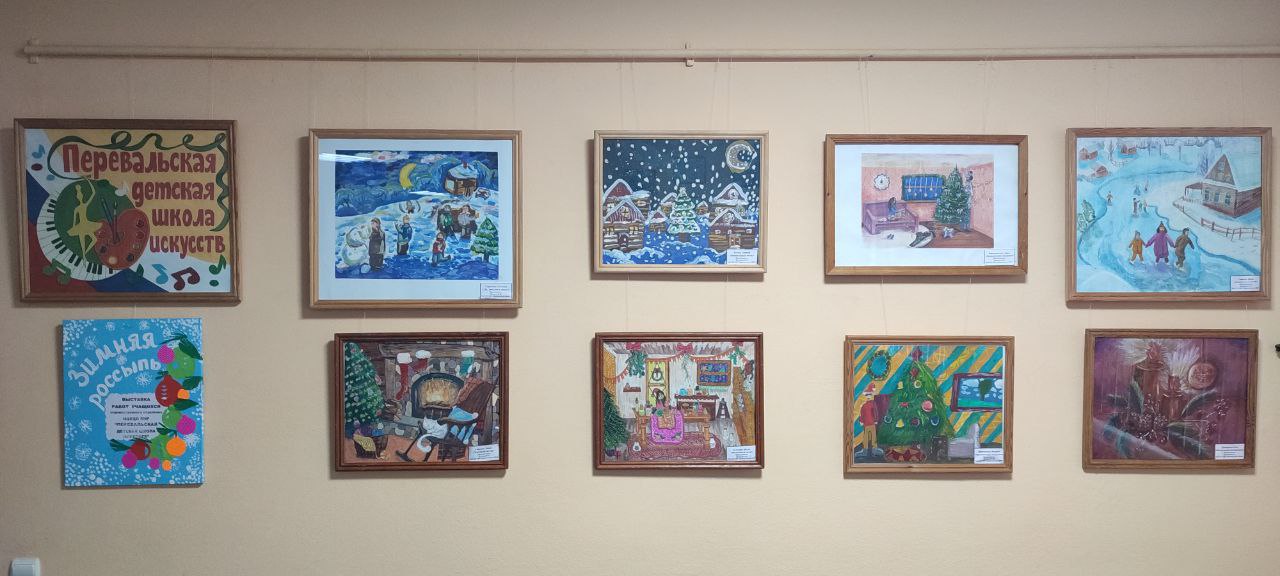На выставке представлены работы юных художников Перевальской детской школы искусств, которые с вдохновением и фантазией запечатлели красоту зимних пейзажей.