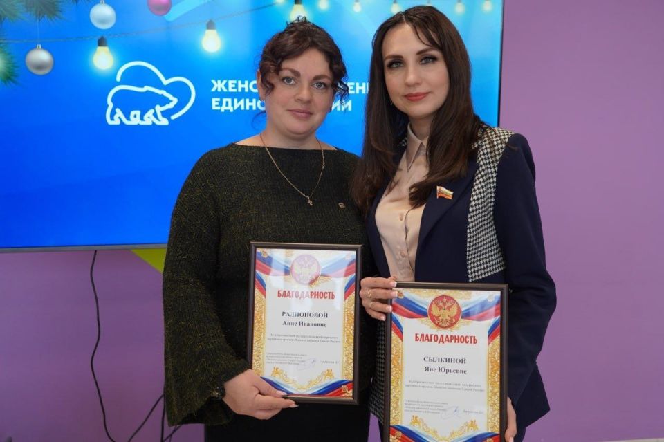 В ходе мероприятия Яна Сылкина и Анна Радионова получили благодарности от Дарьи Лантратовой, которая является Сопредседателем общественного совета федерального партийного проекта "Женское движение Единой России".