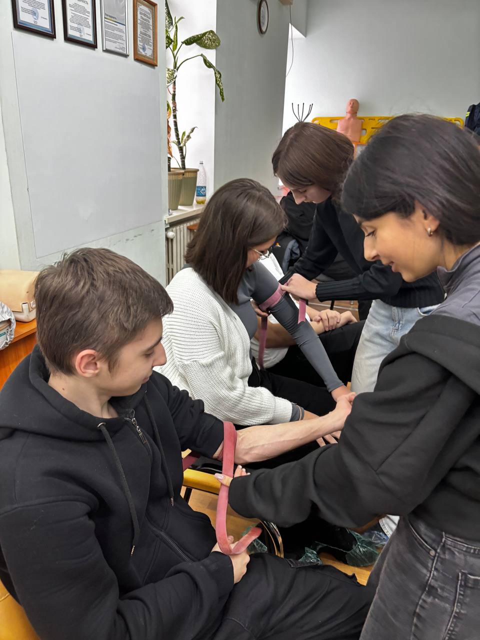 Познавательным для ребят стал и мастер класс по оказанию первой помощи. Инструктор Школы медицины катастроф, фельдшер СМП Александра Бенера рассказала и показала учащимся основные правила Универсального алгоритма в экстренных ситуациях, которые они тут же попробовали применить в учебном классе.