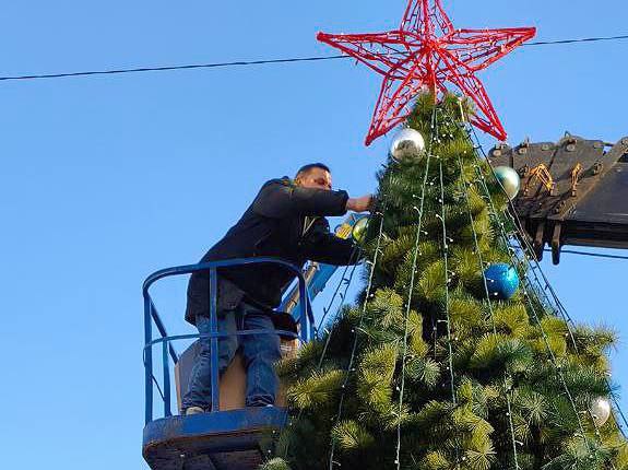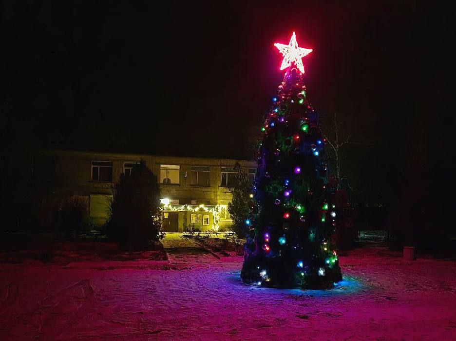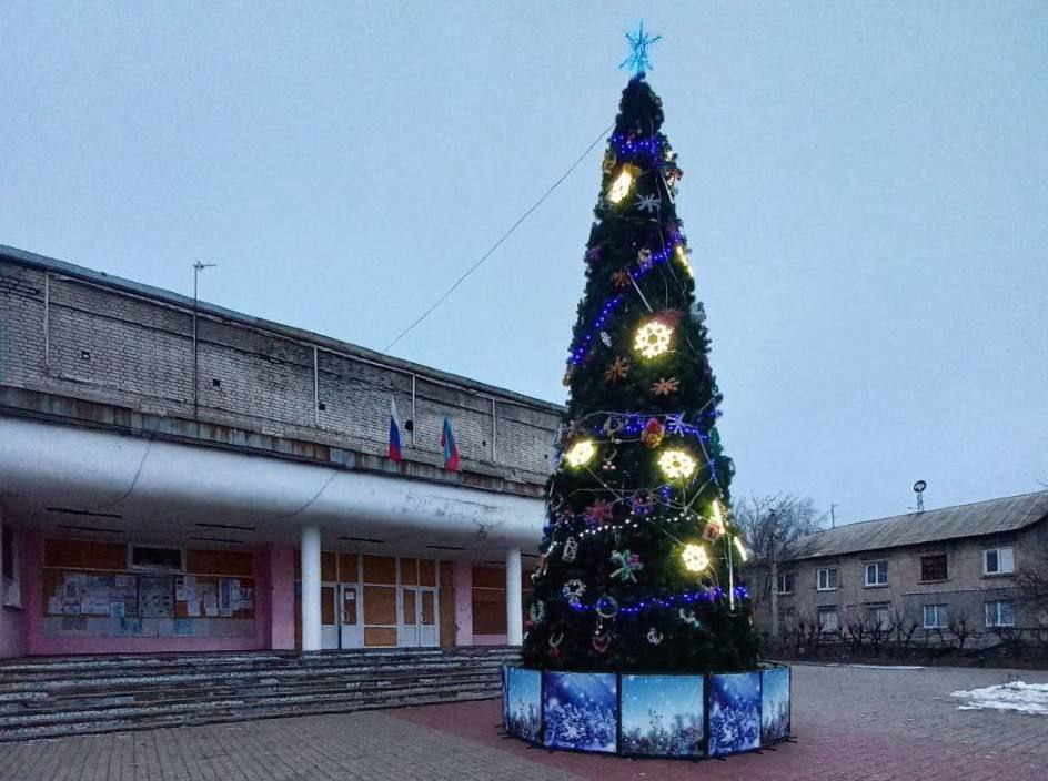 Также, благодаря совместным усилиям культурных учреждений и участка ККУ города Горское, а также содействию строителей из шефа-региона Калужской области и высоковольтников, восстанавливающих линии электроснабжения на нашей территории, символ нового года появился у местного ДК.