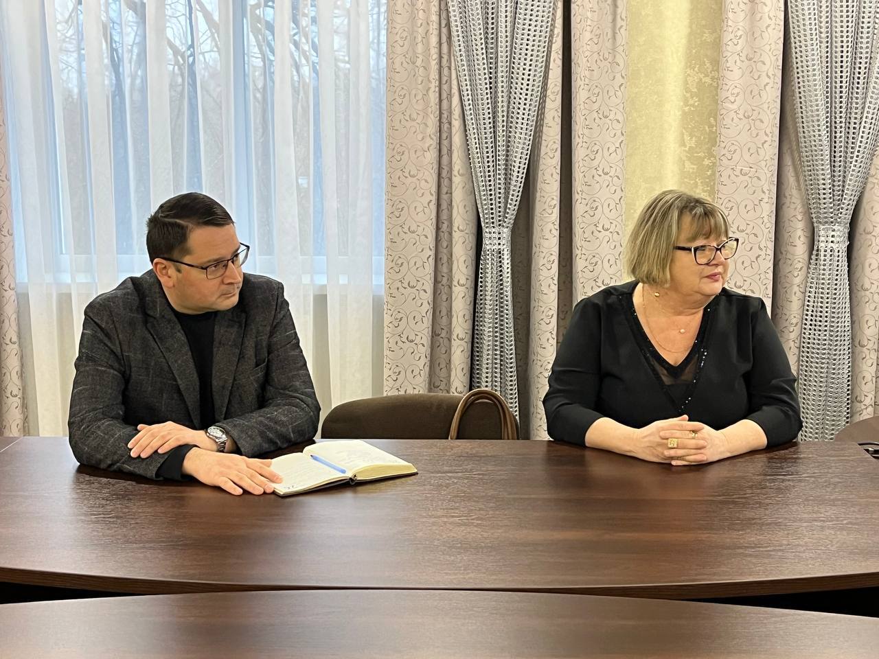 Заместитель Главы Администрации Марковского муниципального округа ЛНР Андрей Клименко, совместно с начальником управления агропромышленного развития, экономики, муниципальных закупок, имущественных и земельных отношений Администрации Ириной Григоренко провели рабочую встречу с директором Общества с ограниченной ответственностью "Мирное Плюс" Пульной Натальей Васильевной.