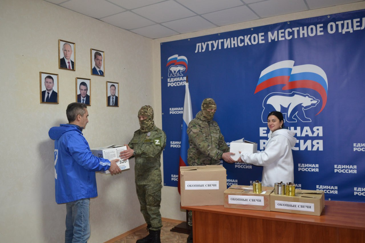 Сегодня в Лутугинском местном отделении партии «Единая Россия» состоялась передача окопных свечей на фронт.
