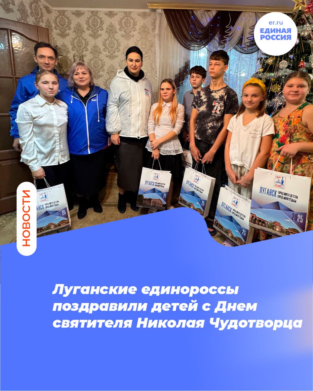 Ко Дню святителя Николая Чудотворца секретарь Луганского местного отделения партии Единая Россия, врип главы городского округа Яна Пащенко совместно с заместителем главы Натальей Куличенко, исполнительным секретарем местного отделения партии Егором Бабкиным и коллегами из Администрации посетили три детских дома семейного типа, расположенные в Луганске.