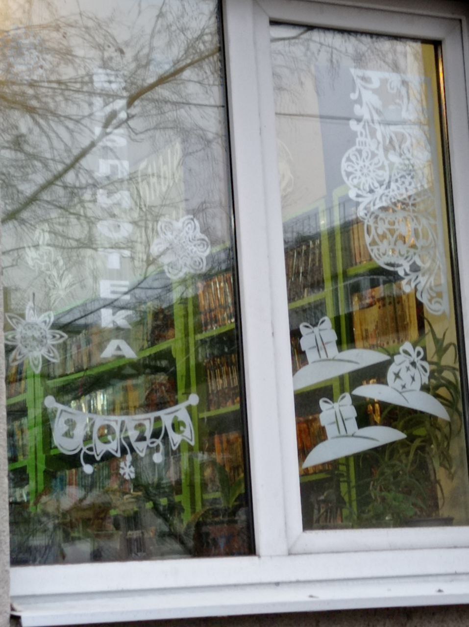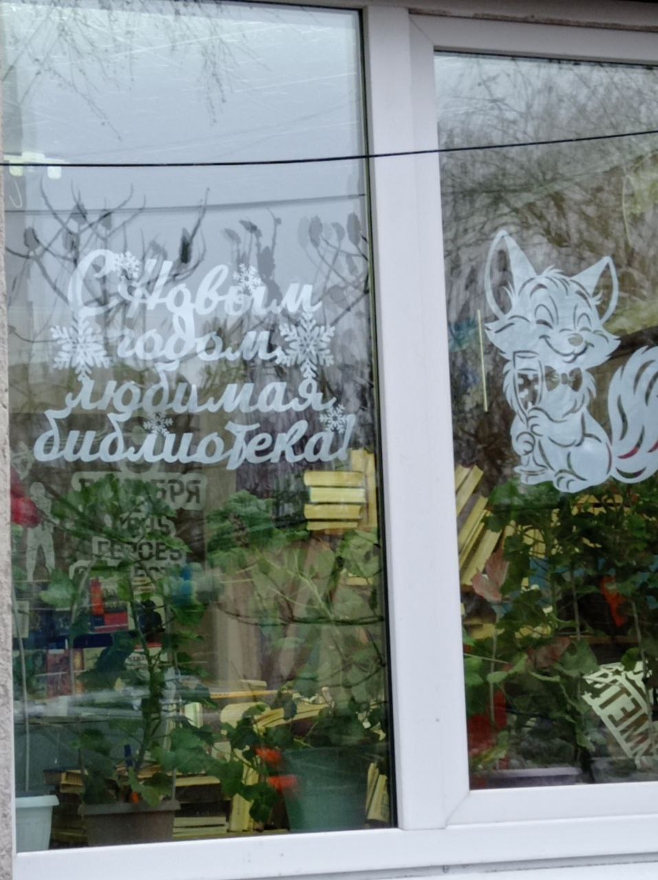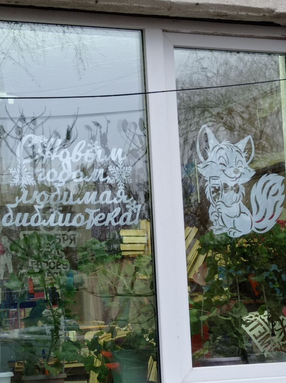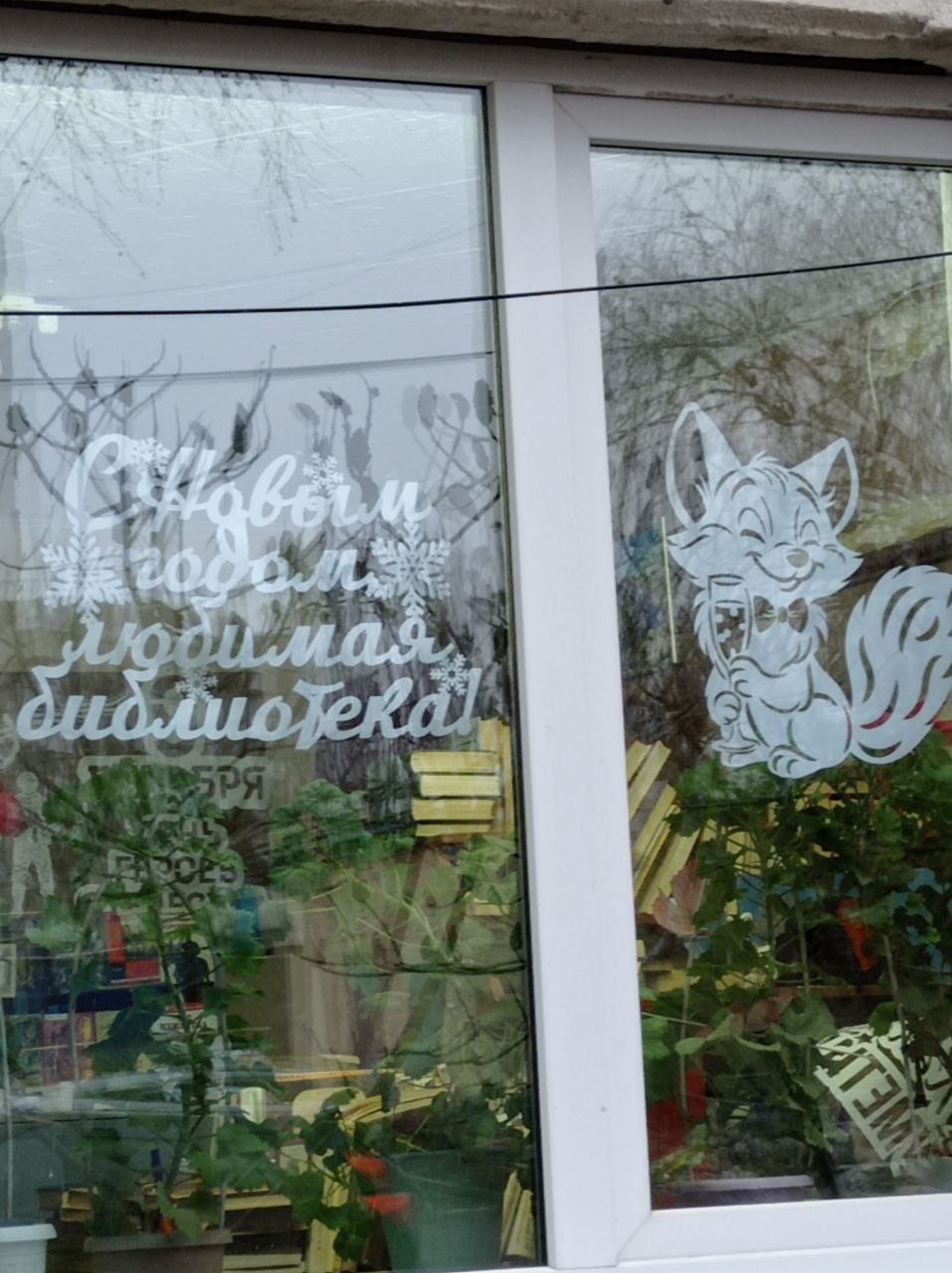 Готовимся встречать Новый год! Украсили окошки в нашей библиотеке