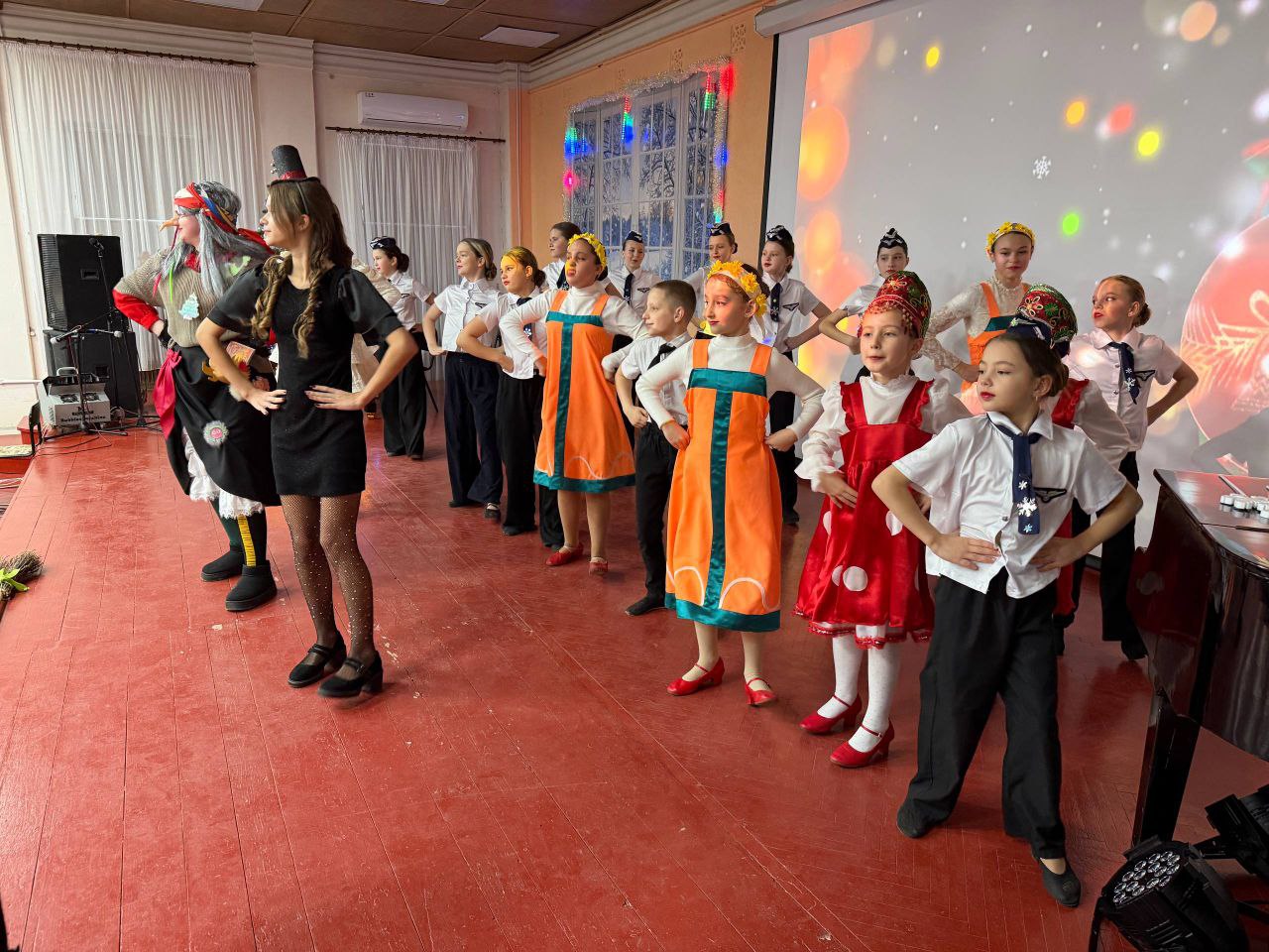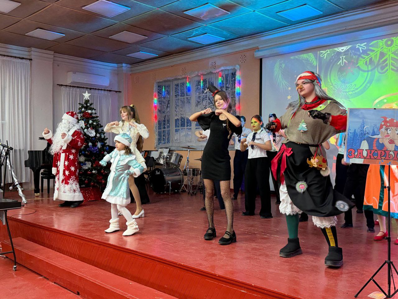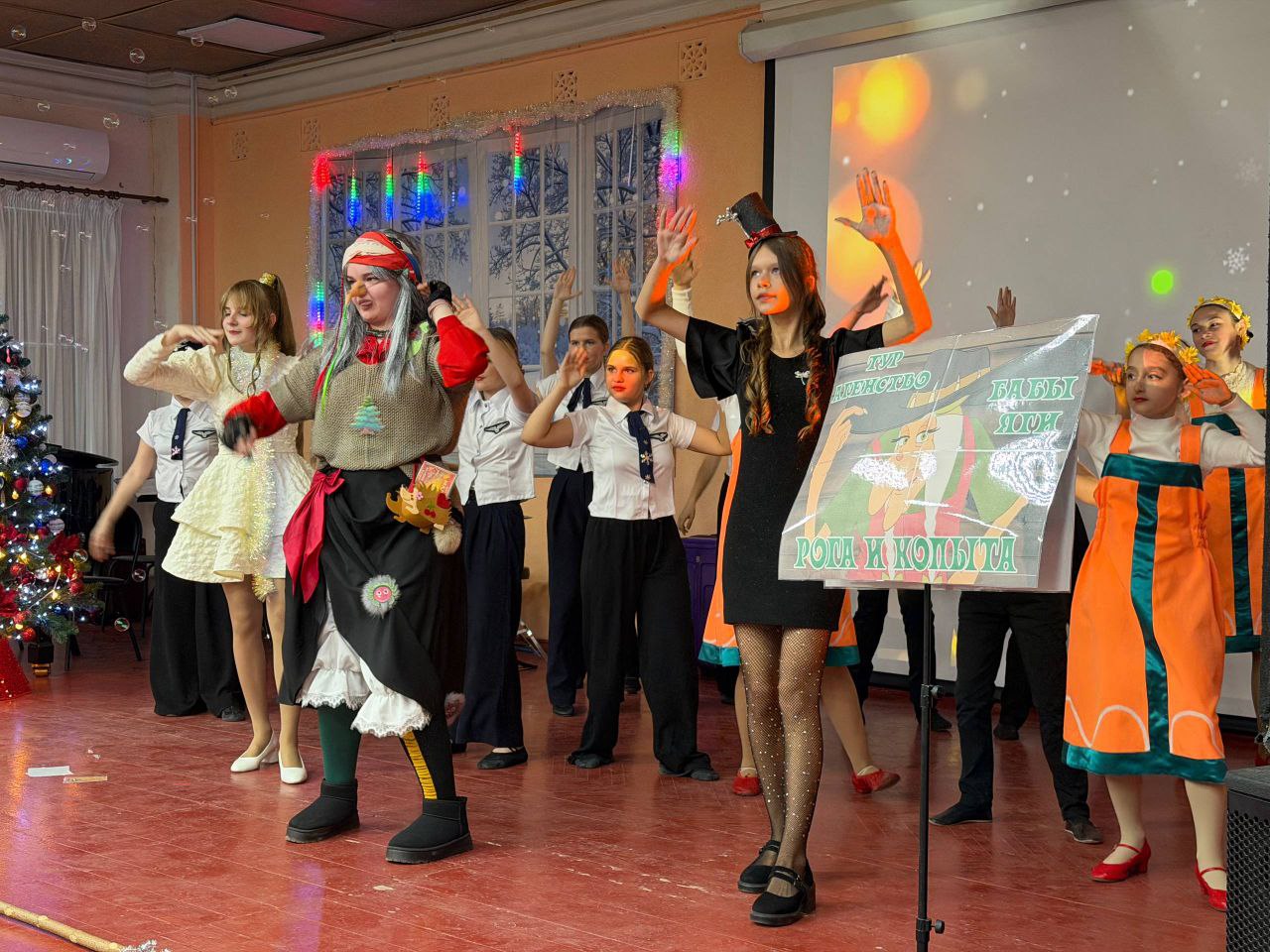 Звучали задорные песни, кружились в танцах, а яркие маскарадные костюмы и новогодние украшения создали неповторимое праздничное настроение.