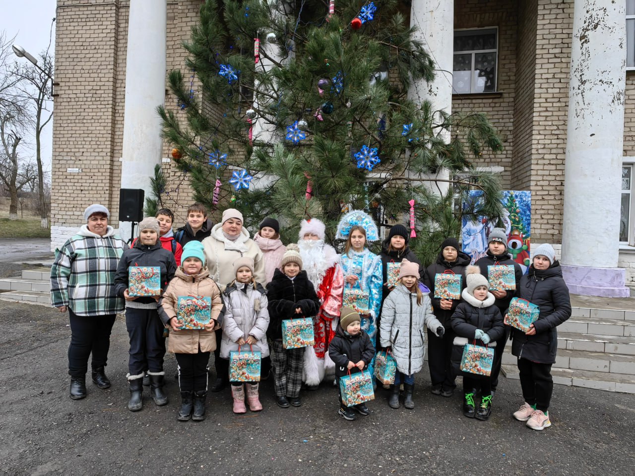 На мероприятии все присутствующие детки получили новогодние подарки.