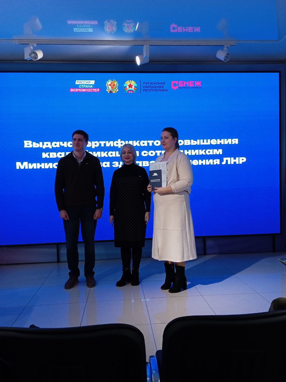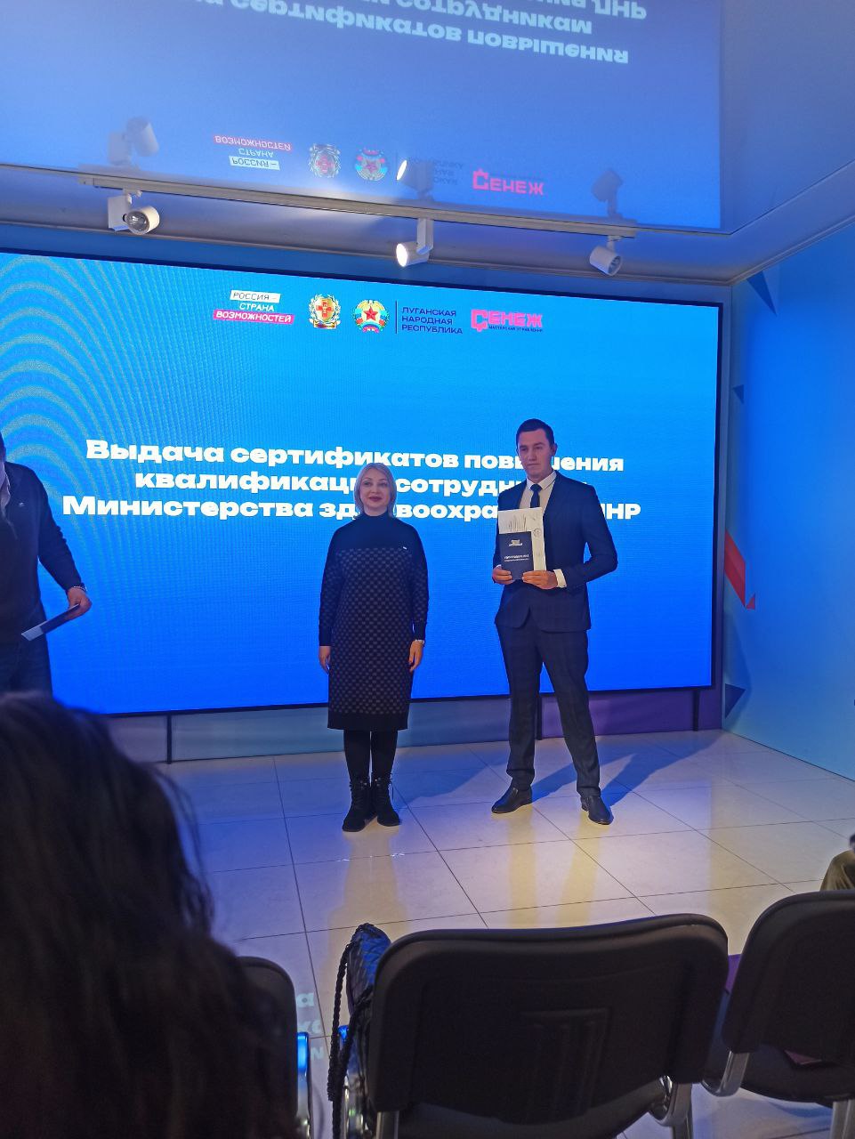Удостоверения о повышении квалификации им лично вручила министр здравоохранения Луганской Народной Республики Пащенко Н.А., отметив важность внедрения современных управленческих практик для развития системы здравоохранения региона.