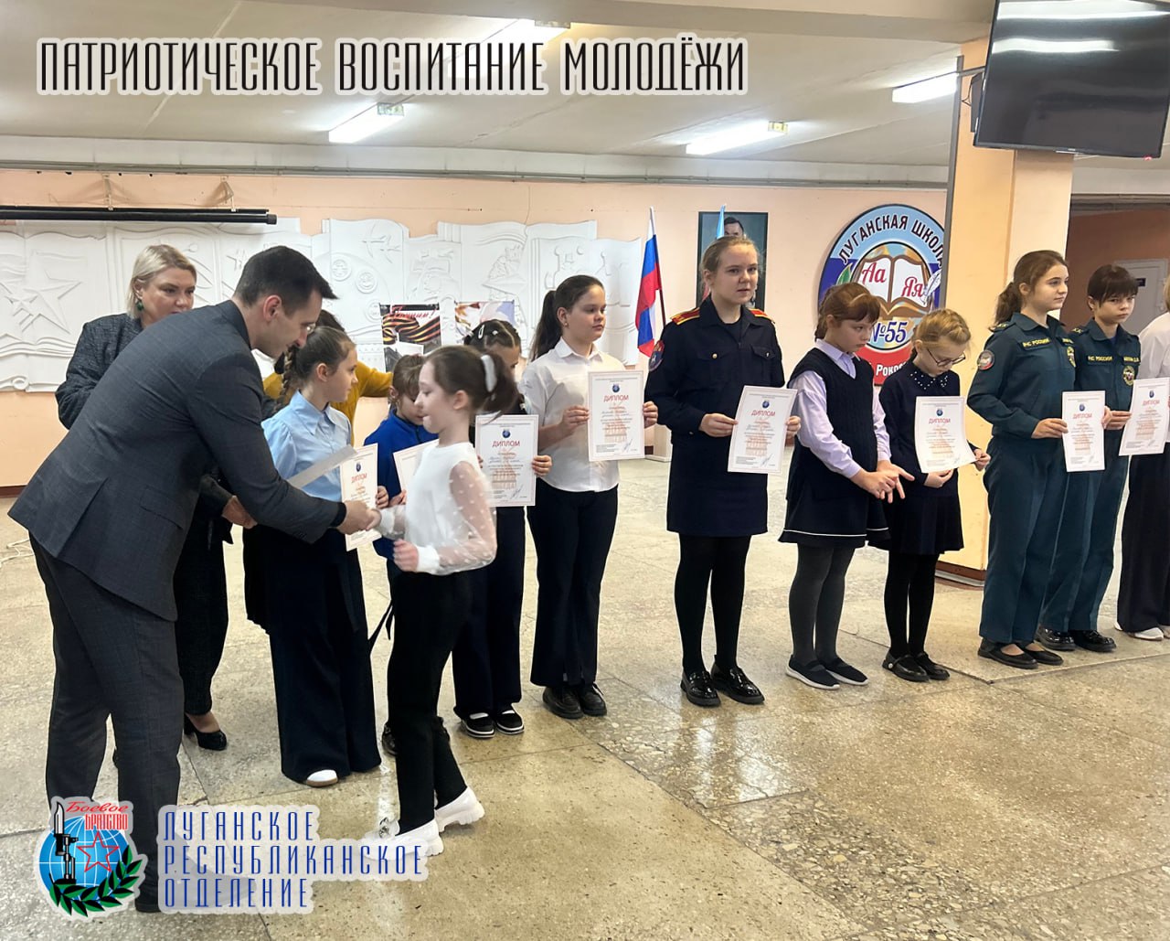 5 декабря Андрей Валерьевич Самойлов депутат Народного Совета Луганской Народной Республики, Член Совета Луганского республиканского отделения Всероссийской общественной организации ветеранов «БОЕВОЕ БРАТСТВО», Руководитель ЛРО ВОО «Молодая Гвардия Единой России» торжественно наградил участников конкурса «Память Сильнее Времени» в школе № 55 имени К.К. Рокосовского города Луганска.