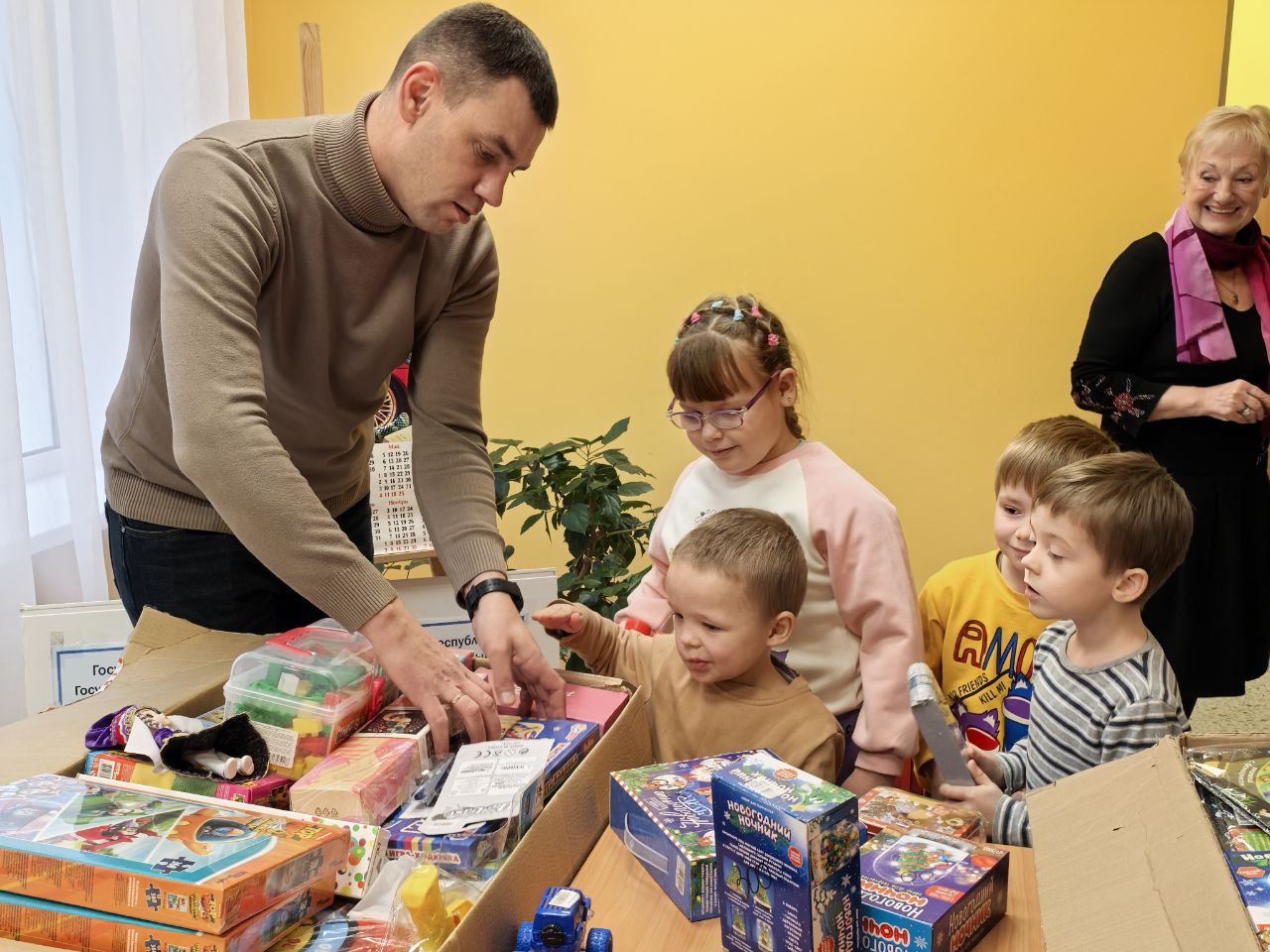 В Рубежном по поручению Секретаря регионального отделения «Единой России» Дениса Мирошниченко партийцы посетили ясли-сад «Красная шапочка». Депутат Народного Совета ЛНР Алексей Околелов привез детям разнообразные игрушки, в том числе собранные в рамках акции «Коробка храбрости».