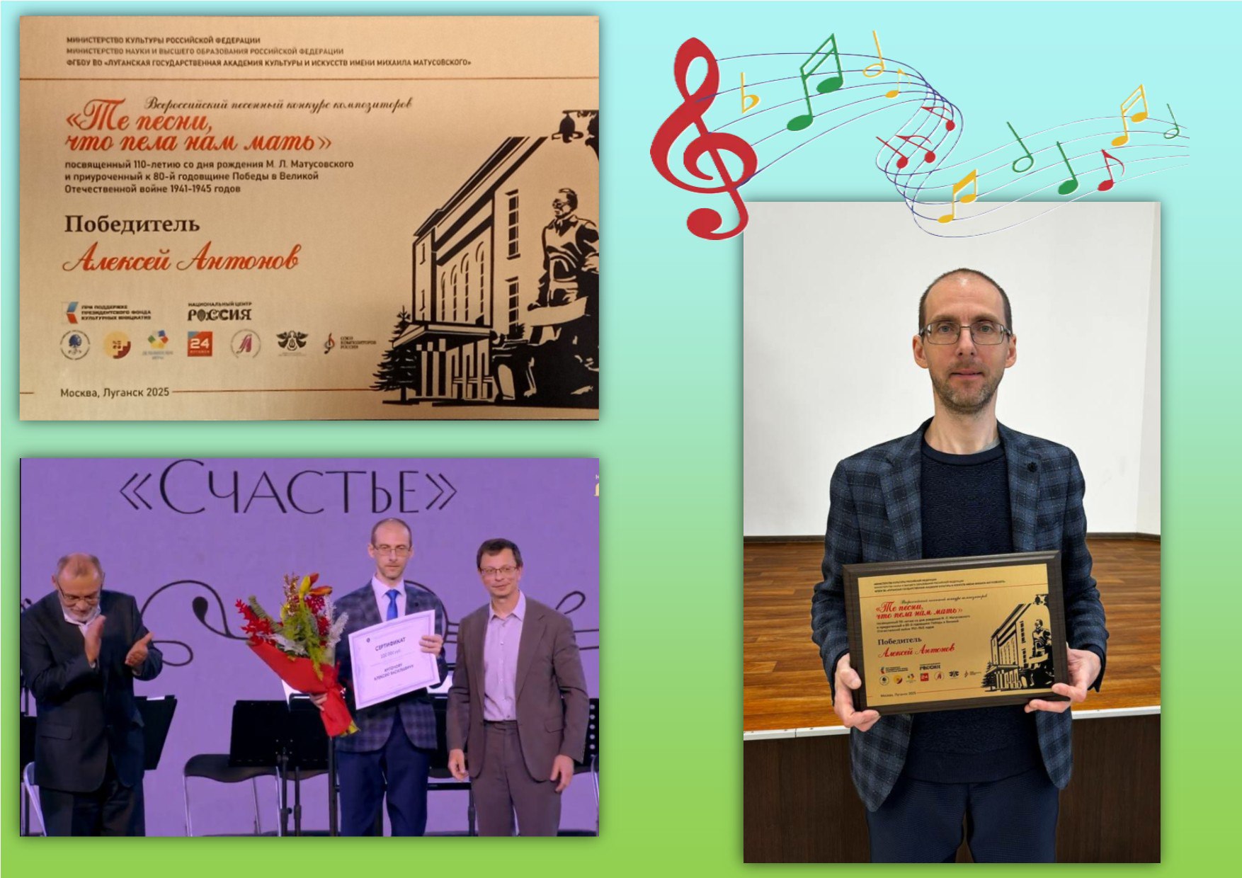 Сердечно поздравляем Антонова Алексея Васильевича с блестящей победой в Всероссийском песенном конкурсе композиторов «Те песни, что пела нам мать»