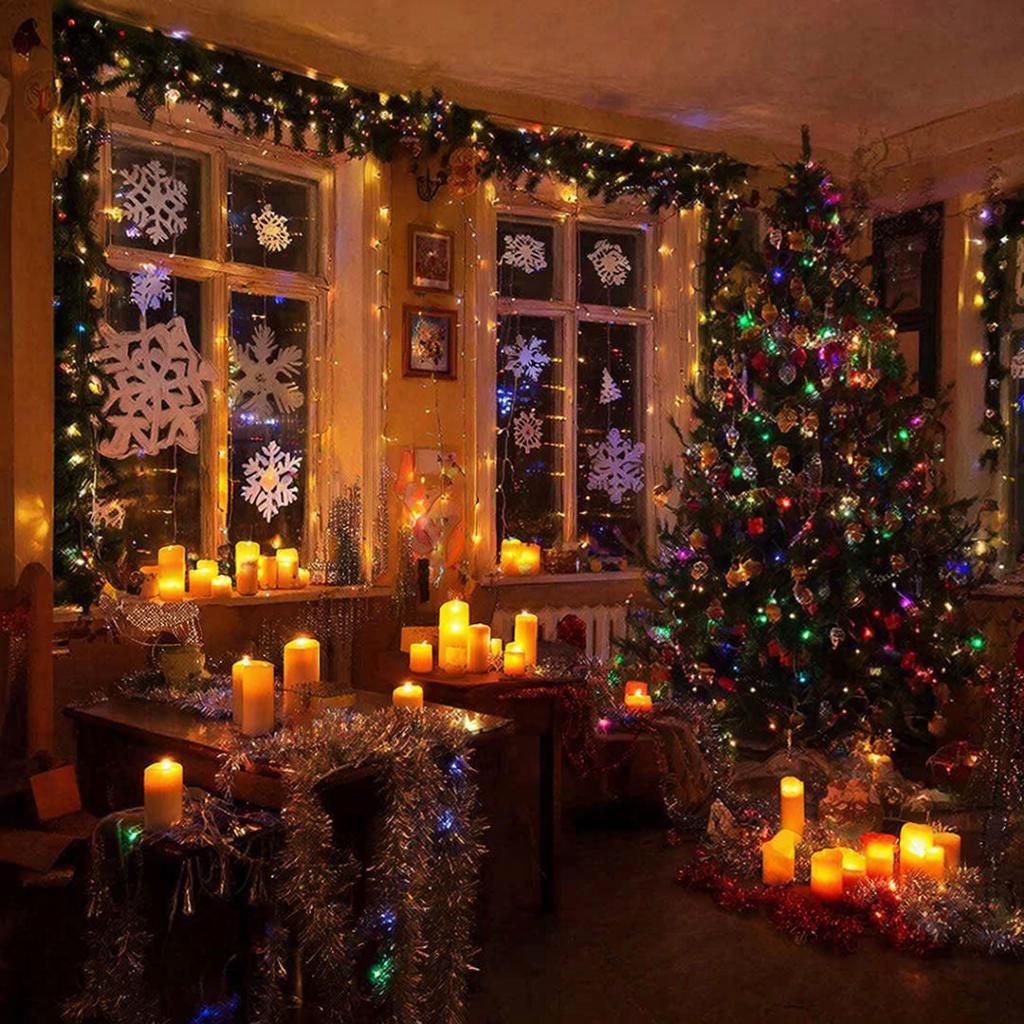 Главными атрибутами новогоднего декора зачастую становятся снежинки, которые украшают окна. Они создают ощущение зимней сказки, а каждый раз, глядя на них, хочется верить в чудо. Гирлянды — яркие, переливающиеся и иногда многослойные — обвивают стены, украшения и ёлку, добавляя искрящийся свет и настроение веселья. Праздничные свечи, расставленные по дому, создают уютное тепло и особую атмосферу спокойствия и уюта, а сверкающий «дождик» или мишура придают интерьеру ощущение сказки и волшебства.
