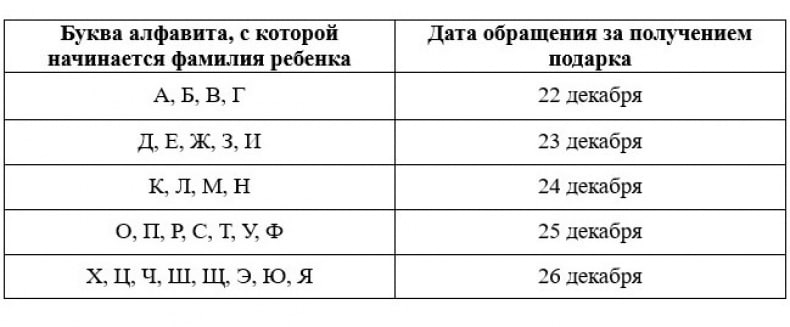 График работы: с 09:30 до 12:30, без перерыва. Последний день выдачи подарков 26 декабря 2025 года.